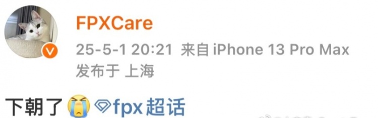 赛后FPX中单Care更新了微博写道:下朝了