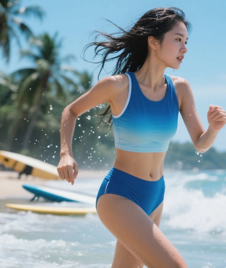 潮水漫过脚背的凉意,是海洋在亲吻美女的印记
