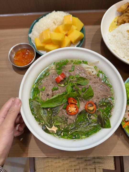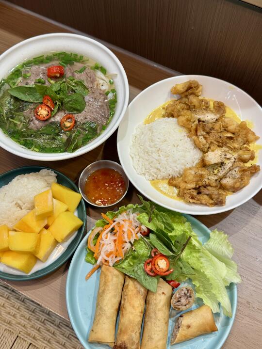 岑头这里好多吃的🍜 今天吃一家到平价又正宗的🇹🇭泰餐~ 非常好吃,每道菜都跟在泰兰德的味道一样 黄咖喱鸡排饭 鸡排炸的酥脆 咖喱浓郁 下饭神器 越南熟牛肉河粉 牛肉很多 清淡却不失美味 芒果糯米饭的芒果很鲜甜 六点去已经基本满座了,集美学生真会吃 也很适合一人食的餐厅🥢性价比很高