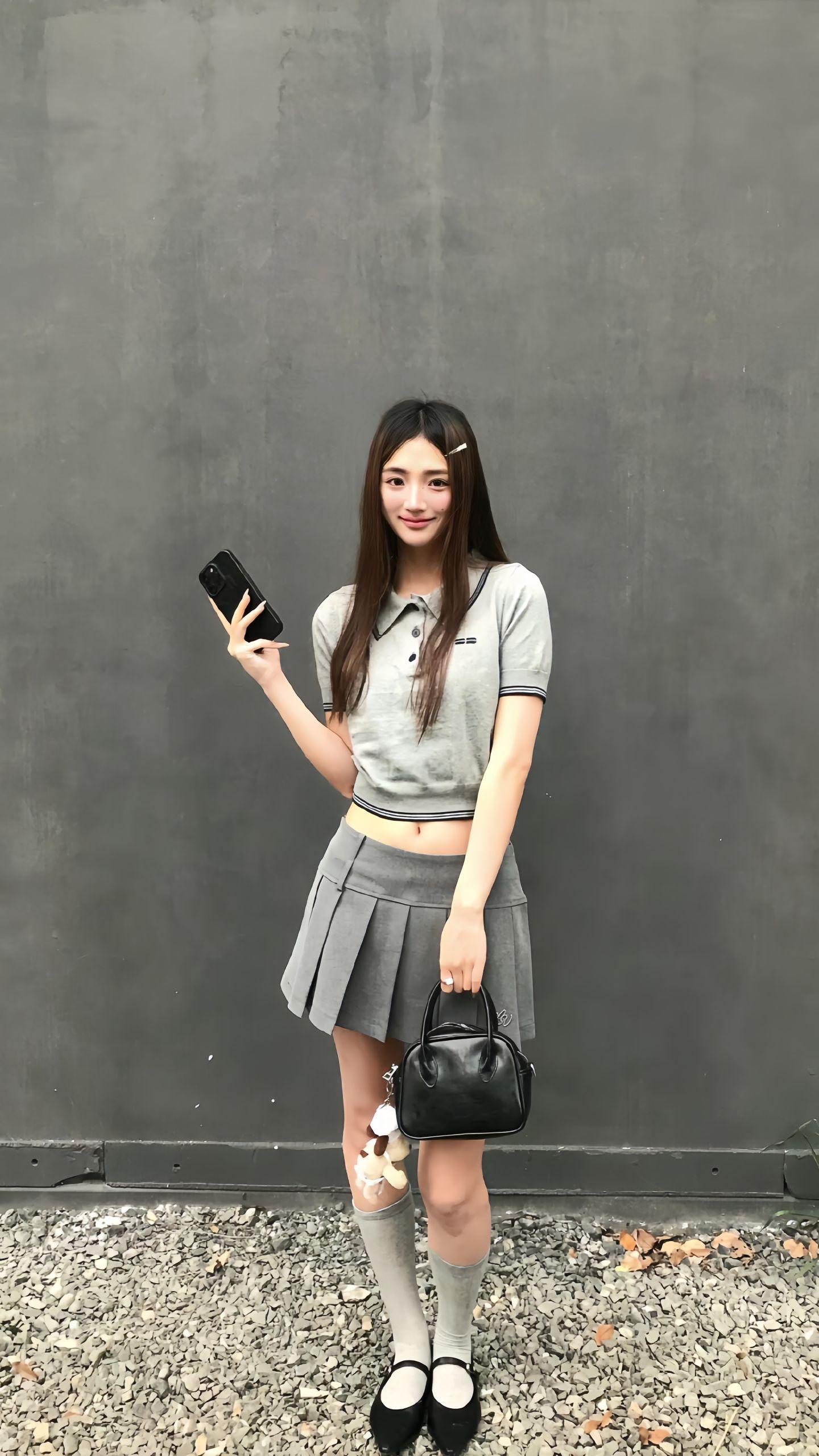 光之影甜美少女风,蕾丝背心搭配灰色短裤,清新自然,元气满满!灰色背心穿搭蓝