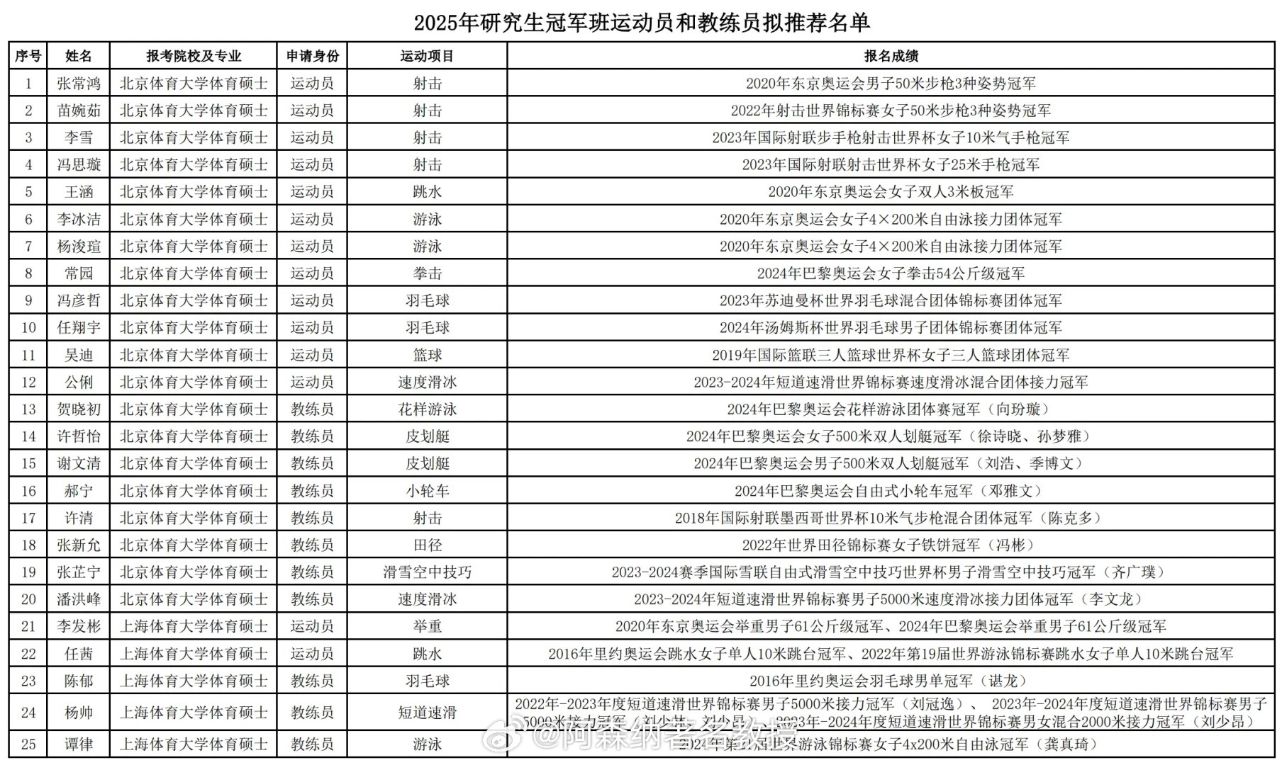 5月12日,国家体育总局科教司官网发布《体育总局科教司关于2025年研究生冠军班运动员和教练员拟推荐名单的公示》,李冰洁和杨浚瑄作为2020东京奥运会女子4×200米自由泳接力团体冠军,被推荐免初试攻读北京体育大学2025年研究生冠军班。