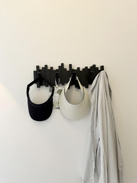看了太多的挂钩,千篇一律没有趣味性 一眼被这个有趣的设计给吸引到了🤩 远远看去好像钢琴键一样 打开琴键就变成挂钩啦~ 收纳帽子.衣服.包包.雨伞.钥匙... 给足出门安全感 再也不会忘记带啦~ 打孔上墙更牢固!! 冬天的时候挂上一家三口的加厚羽绒服 依然稳得很!