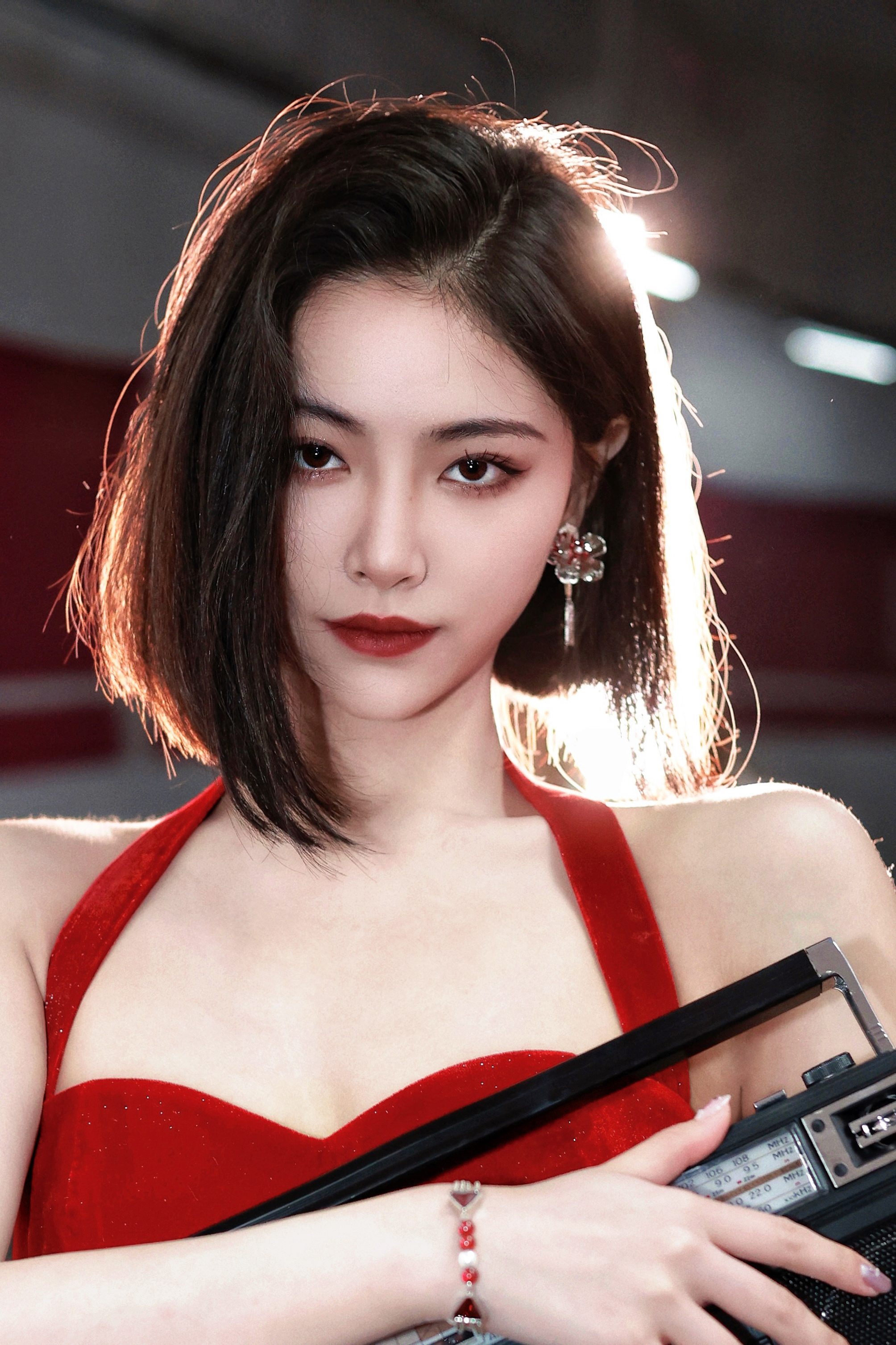 许佳琪经典停车场红裙造型被kiki魅惑到了🦊