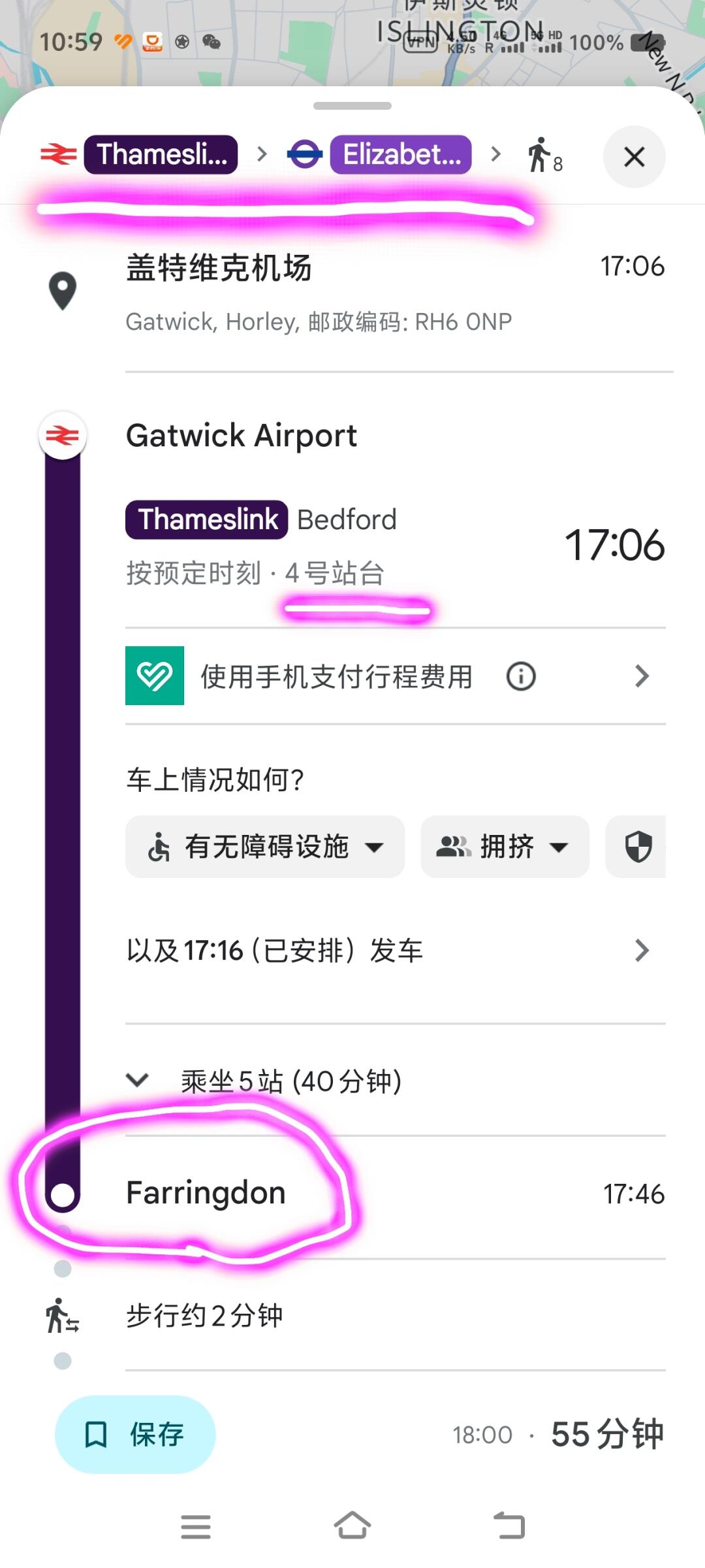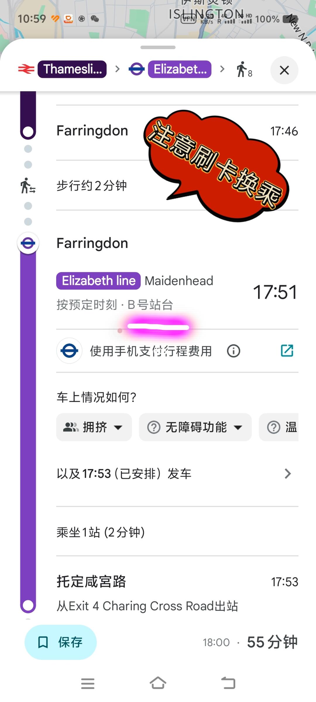 [向右R]实际乘坐转车看图4和图5,注意上车站台,在Farringdon站转车,这里重点来了[doge][doge][doge]