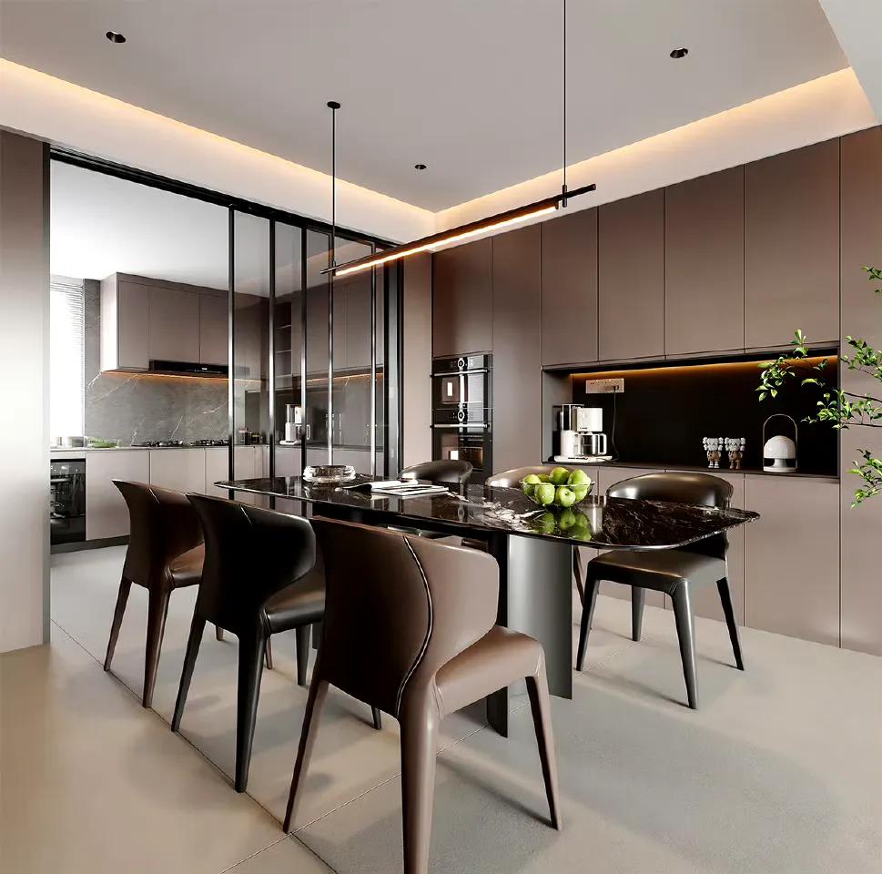 现代意式风餐厅设计,总能带来别具一格的体验。像有个118平米的意式简约客餐厅样板间,小清新色调凸显出前卫生活方式,嫩绿色绿植在冬天也带来勃勃生机。 还有个84.72㎡的意式轻奢开放式餐厨一体空间,用米白色、灰黑色和柔和木质色作主色,营造出高级宁静又舒适的环境。为了凸显奢华,还加了一抹桔红色,与整体形成对比,让主要区域更突出,也增添了轻奢与温馨感。这9款设计各有特色,无论是清新风还是轻奢风,都能打造出令人心动的餐厅氛围。 意式风格效果图 意式风装修设计 简约风餐厅设计 简约餐厅风格 意式客餐厅设计 意式风装修 意式装修