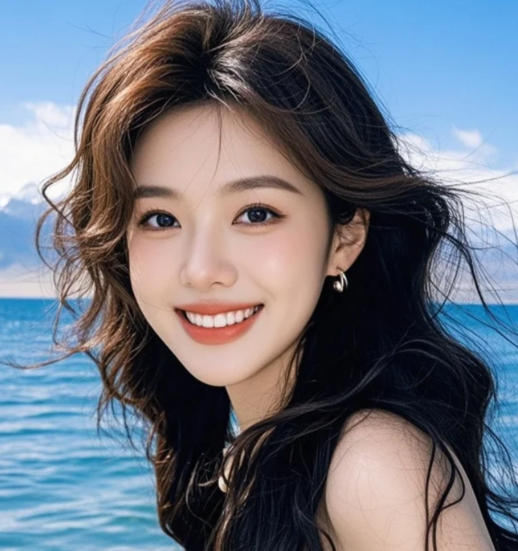 大眼睛里的世界:她在湖边的温柔凝视