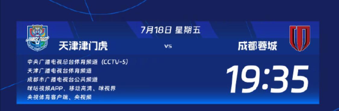 焦点大战!成都蓉城客战天津津门虎的比赛信息出炉: 麦麦提江担任本场比赛的主裁判,两名助理裁判是刘星和唐荣地,VAR裁判是甘树然,应该说还是比较重视的配置。 转播信息方面,CCTV5将会现场直播,天津体育频道、成都的CDTV5同样会免费转播本场赛事,球迷们可以按需观看。电脑和手机端则是可以在央视体育、央视频和咪咕等观看。 本场比赛,由于成都蓉城赛前突发内部矛盾,球员们的战意如何,心态是否受到影响,是一个关键点。另外,天津津门虎本赛季首回合2-1取胜,赢得了双方交锋的首胜,在士气和信心上有一定的优势!