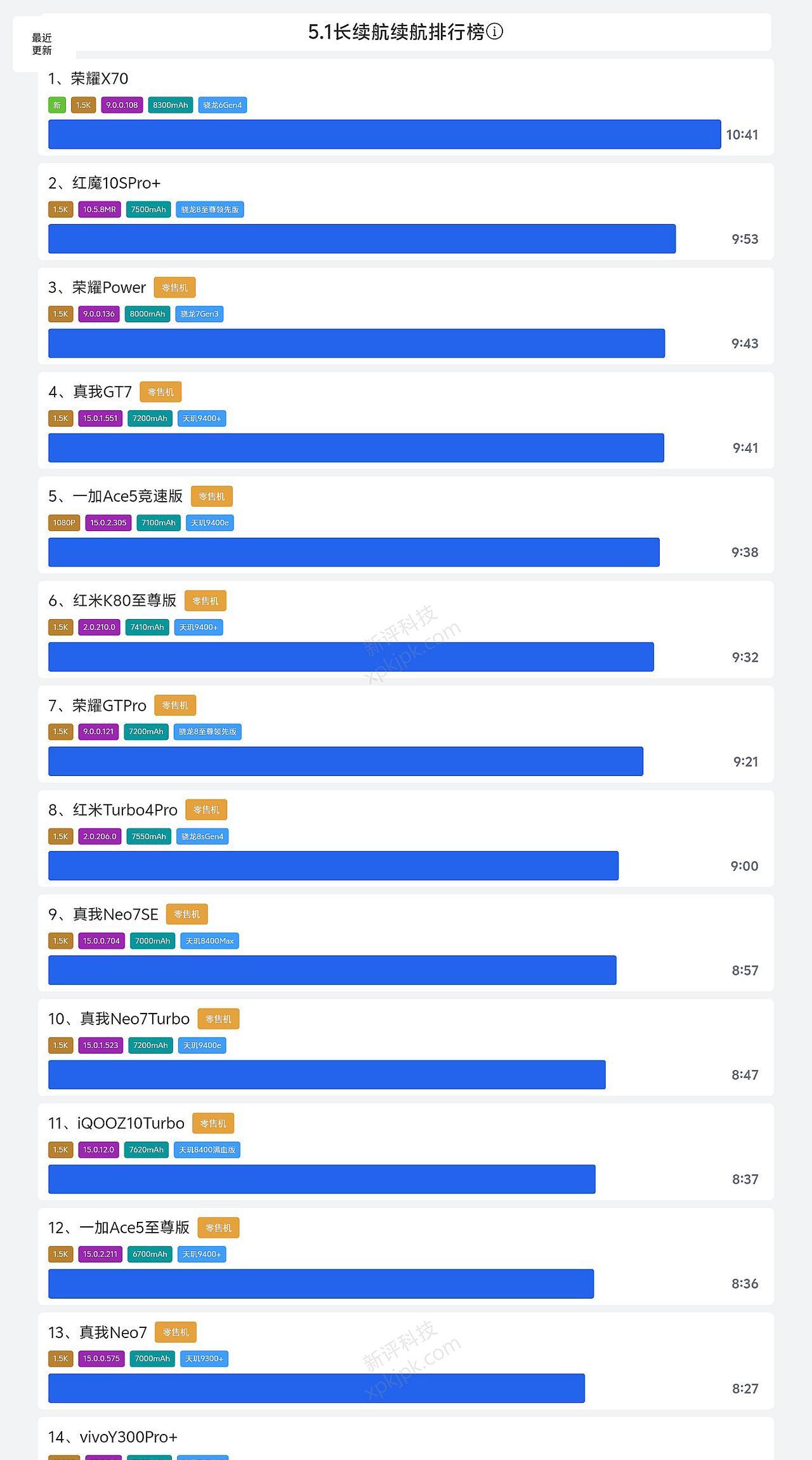 最新一期手机续航排行榜,某些手机正在被啪啪打脸 7300mAh的续航能力只能用一