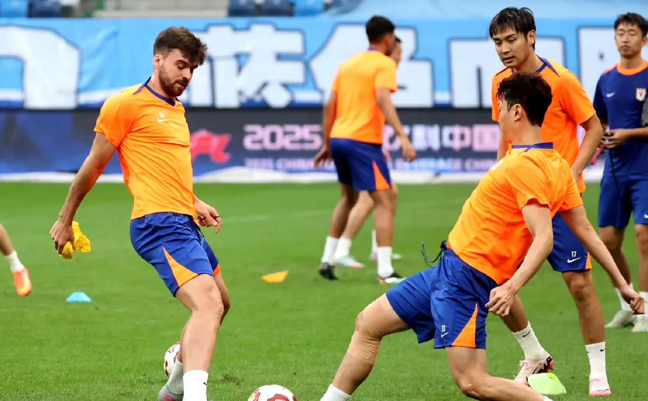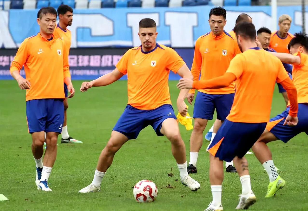 山东泰山对阵大连英博赛前适应场地训练! 23名球员参加训练,五名外援全部到位,港