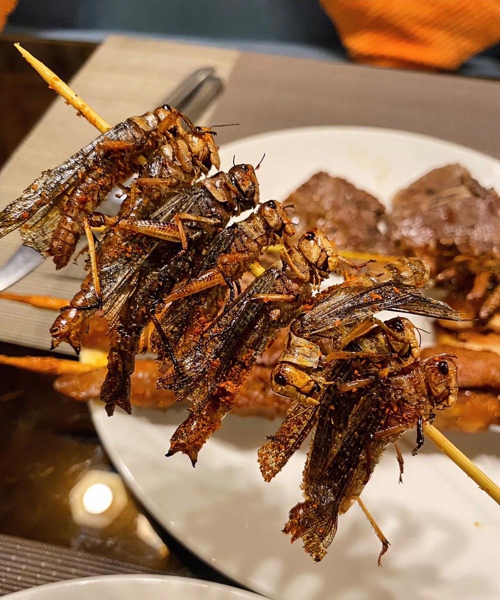 这炸蚂蚱算不算你心中乡愁的一部分呢? 田埂边的草窝里,蚂蚱正扑棱着蹦跶,用手心捂在地上,轻轻拿起,把蚂蚱串成一串,烤着吃。这画面,是不是儿时记忆里曾经疯狂的童年片段。 现在,再不会因在田间地头抓蚂蚱晒得黝黑,更没人懂得在田间“把蚂蚱串成串”的浪漫。再吃炸蚂蚱,味道依然酥脆,但是没有了将战利品咬在嘴里的仪式感,这乡愁何止是一只蚂蚱的味儿。 如今蚂蚱还在,只是陪你烤蚂蚱的人,和那个追着蚂蚱跑的自己,都留在了时光里。 #乡愁# #农村蚂蚱# #炒蚂蚱# #农家香酥蚂蚱# #油炸蚂蚱蚕蛹# #油炸蚂蚱蜢# #辣炒蚂蚱# #香炸蝗虫# #香辣蚂蚱#