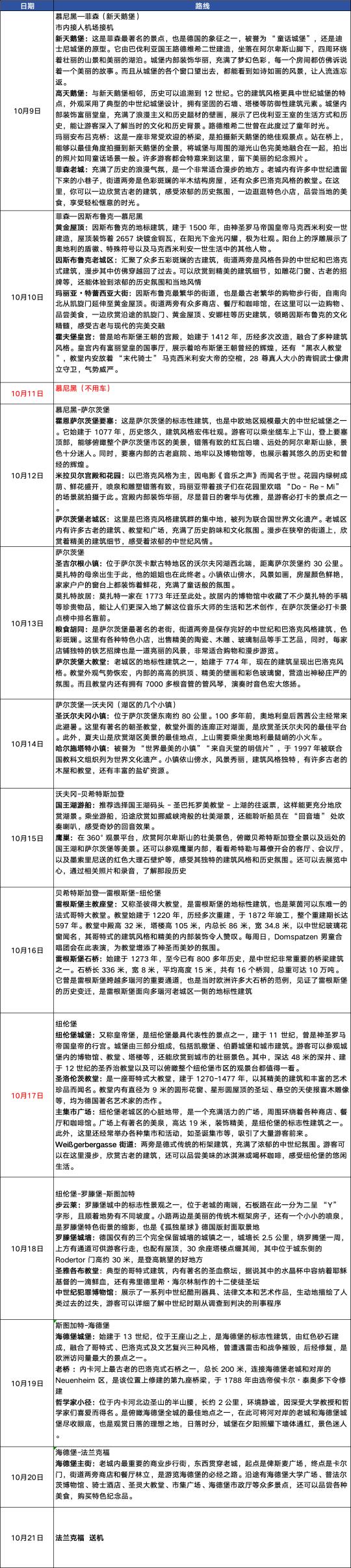 给人做了一个德国+奥地利湖区的行程,基本上全程用车,但是中途必须回慕尼黑,回程在法兰克福,大家可以参考,每天的包车建议距离也标注了,反正你说少一点是不是可以,当然可以,只不过可能逛的地方就少一点,这个丰俭由人