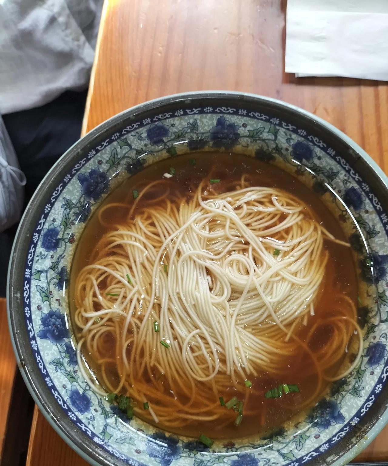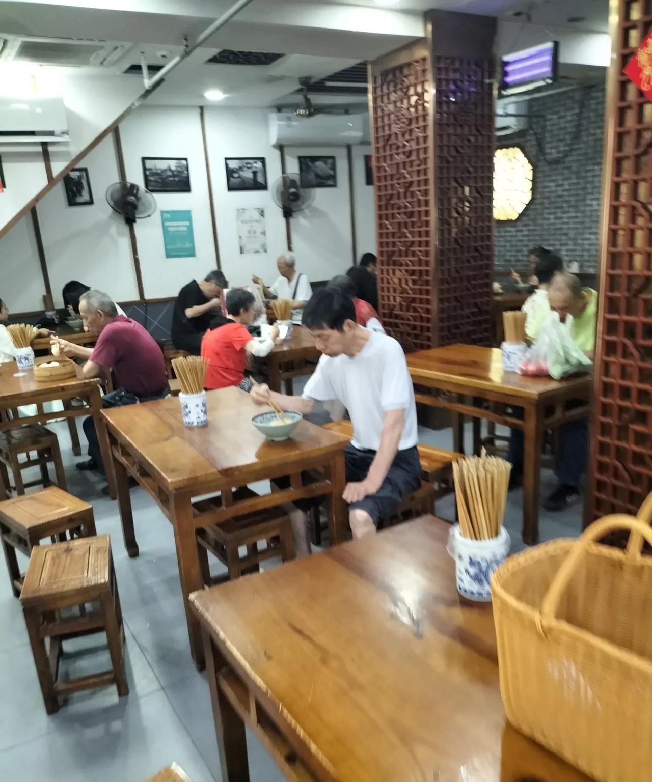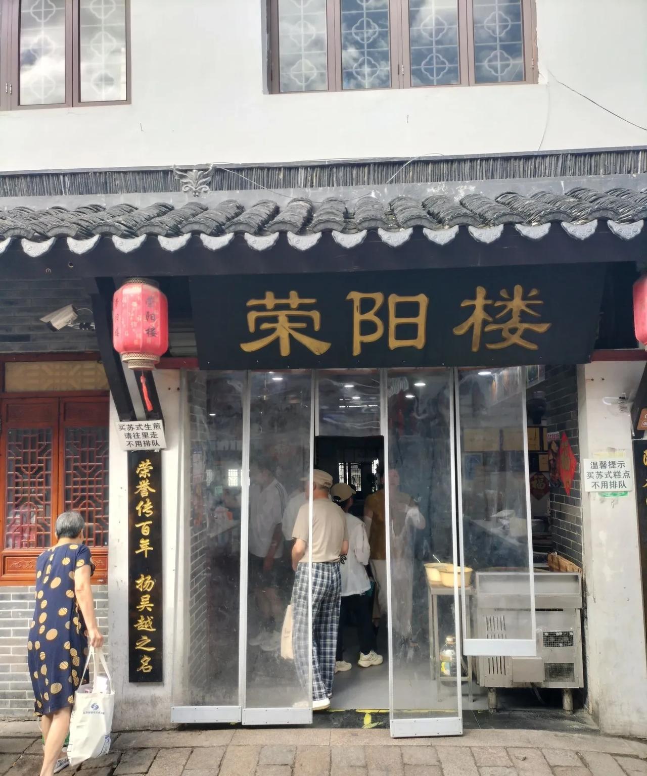 跟着当地老人吃,一定错不了。今天早晨吃了。苏州山塘街老街坊爱吃的早点。 每个地方都有当地人对口的饭食。 山塘街是景点,也是古街,这里的房子有一百多年的历史,街上有游客,也有老街坊。 早晨来到山塘街,一路逛,一路寻找当地人吃的早点。 荣阳楼,几个老人提着袋子,颤颤巍巍,进进出出的店,一定错不了。 老人爱吃,口味一定好,价格也一定不贵。 店里坐满了,有吃面的,有吃生煎的,吃生煎的阿姨,接碗开水,加点醋,一边吃,一边喝。 有吃碗馄饨,再要几个生煎的。 面不贵,最便宜的阳春面才五块,比我们德州小碗拉面还便宜。 生煎18元8个,个儿不大,底面煎的金黄,馅儿纯肉,有汤汁。 我要了一碗八块钱的辣酱面。 辣酱不辣,面量很足。 一碗面,一个生煎,吃得饱饱的。 一方水土养一方人,跟着当地人吃,没有错!