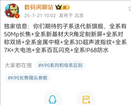 子系迭代旗舰全系搭载有50Mp长焦,采用全系新基材大R角定制新屏,拥有全系对称双扬,全系金属中框,全系3D超声波指纹,全系7K毫安大电池,全系百瓦闪充,全系IP68防水 。