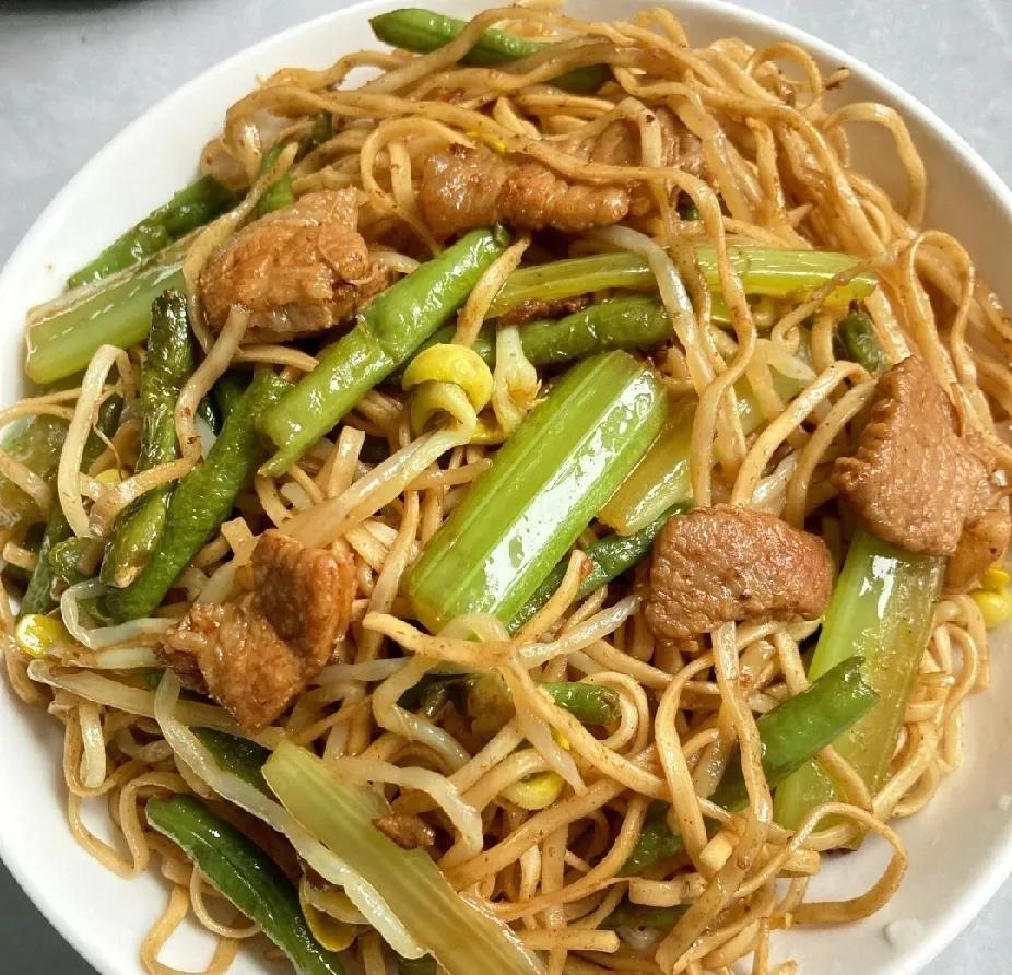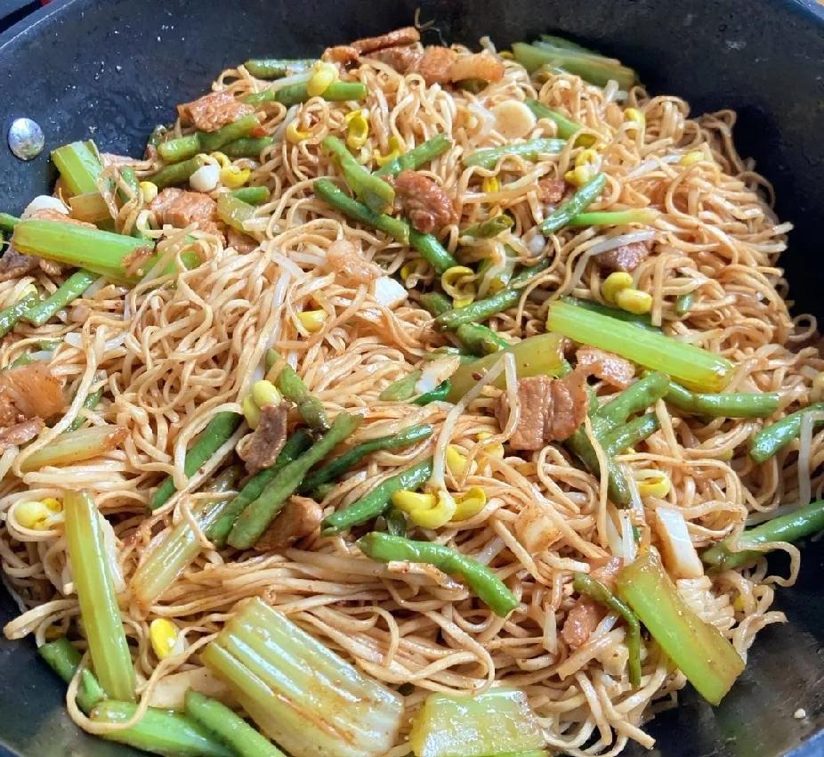 每次从杭州回南阳方城的老家,岳父岳母总是炒八盘,蒸卤面条,热情招待我。 卤面条蒸得真好吃,用刚刚轧出的细面条,飘着面香味,不用宽面条,宽面条口感不好。 主菜用五花肉,配菜用豆角、芹菜、豆芽,以及生抽。 五花肉煸出油后,起到增香作用。 豆角和豆芽,起到配菜多样性的作用。 芹菜是天然香精,可以替代八角、花椒、鸡精、味精。 生抽颜色浅,可以调色。 每次都能怼上两三碗,而忘了吃八个盘。