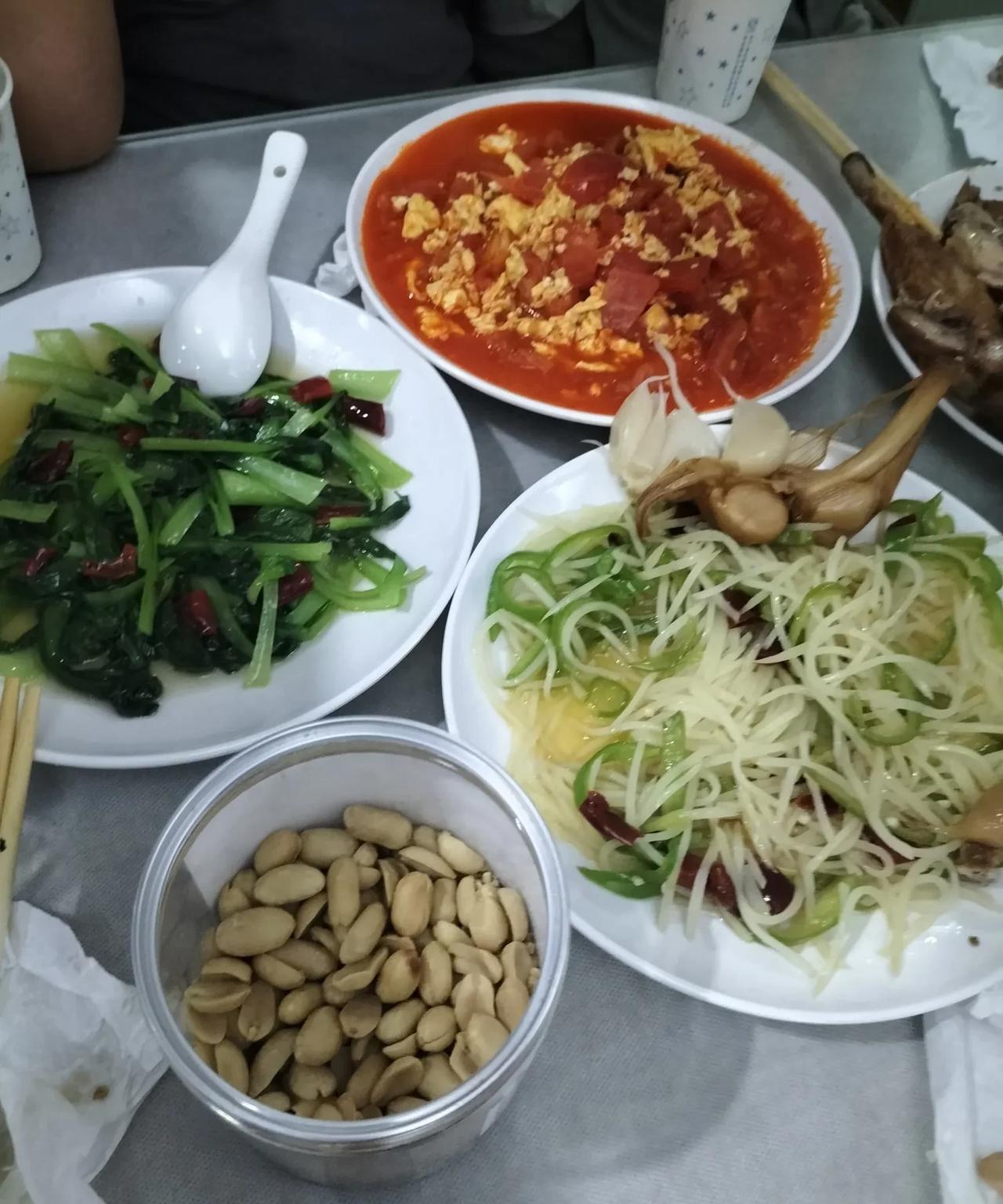 第一次在火车餐桌上吃饭,味道很丰富。 坐绿皮火车硬卧回家,上车八点了,去餐车吃晚饭,这是第一次在火车餐桌上吃饭。 餐车在火车中部,隔开硬软卧和硬座。 菜单正面一共五个菜,两个肉菜回锅肉,辣子鸡块,三个素菜。 想点反面的麻辣豆腐,服务员说,没有豆腐。 服务员把菜单翻过来,只有这几个菜。 我们点了三个素菜,酸辣土豆丝,时令蔬菜,西红柿炒鸡蛋,都是28元一份,共花84。 味道还可以,在火车上吃饭本来期望值就不高。 朋友说,土豆丝是擦的。 我说,摇摇晃晃炒菜,炒这样就不错了。 西红柿炒鸡蛋,西红柿先用开水焯了,这样炒节省时间,可味儿进不去,西红柿寡淡。 朋友想要头大蒜,厨师不给,年轻的列车长坐在旁边说,给他拿! 厨师端出一个小碗,里面有四瓣扒皮,洗净的蒜瓣。 列车长又说了句,不够再要! 我们纷纷夸赞,列车长年轻帅气,有人竟说要给年轻的列车长说对象。 四瓣蒜的魔力。 老绿皮,车厢只有两个插口,有人为了充电,来餐车要个盒饭,一边吃,一边等。 推着车子卖货的列车员,路过我们,停下来,开始聊,几分钟里她一边介绍道口烧鸡,顺带说,她出生在内蒙古,嫁到银川,74年已经退休,在家闲着没事儿,闷得慌,来火车上打工卖货,有个女儿,和老公的关系,宁夏的特产,欢迎我们去宁夏旅游。 几个女人遇到一起,吐槽老公,是永不过时,交心的话题。 在她们互相倾诉到高潮时,我说,你不是对老公不满意,是对自己不满意。 她看看我,推着小车走了,堵了半天的过道,通了。 火车是个神奇的地方,很快就让人拉近距离。 车停了,新的一站到了,各奔东西,毕竟没有几个人,一起坐到终点站。 一起坐到终点站,下车,走进各自的生活。 大新日记