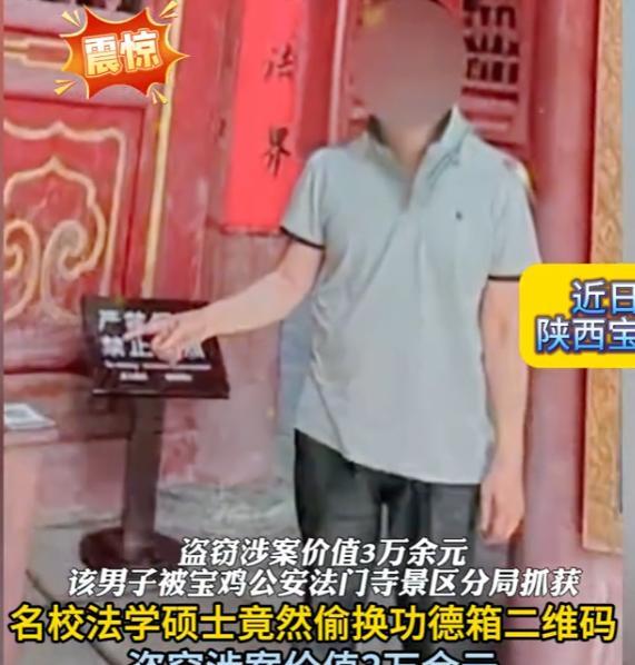 2024年,一男子去寺庙上香,发现功德箱上有个二维码,灵机一动,把自己的收款二维码神不知鬼不觉的贴了上去,陆续将30000元收入囊中,本以为这事天知、地知,结果被帽子叔叔抓获了。 2024年,陕西宝鸡一男子因求职不顺前往寺庙上香,结果发现许多香客在拜完之后都会扫功德箱上的二维码,进行捐献。这时候他环顾四周发现没有人,便心存侥幸,将箱上的二维码偷偷接下来,换上自己的收款码。 做完这些之后,他跪在地上磕了3个头,往功德箱里丢了一笔香火钱,就偷偷摸摸的离开了。在男子看来,这个寺庙的香火很旺,自己把收款码贴到上面,香客们捐的款就会陆陆续续抵达自己的账户上,自己躺在家里什么都不用动,就能赚到很多钱,简直不要太聪明! 从那之后,男子每天都会收到大量的转账,有10元、20元、50元、100元!看到这些数字男子笑的合不拢嘴,没过几天,账户就有了快3万元。男子觉得钱来的很容易,本来还在担心工作找不到,没有收入,这下根本不用焦虑了。 有了钱之后,男子就计划着如何花,先去哪旅游,再去哪逛街,买衣服。他一心想着这件事不会被人发现,也想着在收几天钱就收手不干了,毕竟长期这样肯定是会露出破绽的。 可男子有点贪心,始终觉得再等等,在等等,还不到时候。可没想到就在他贪心的时候,寺庙的负责人发现了这回事,他们察觉到香火钱与此前的差距很大,立马调查,结果发现是有人把功德箱上的二维码给换了,但是这个人是谁他们都不清楚。 于是寺庙的负责人报警,希望警察能揪出这个人。警察接到报案后,立马着手开始调查,根据收款码,他们找到了男子。 当男子看到民警的那一刻,非常淡定,好像早就料到有这么一天。然而,当民警得知男子的身份后,气到不行,完全想不到男子会做出这样的事情。 男子是名校法学硕士,一个高学历的人!民警们觉得以男子的学历找工作应该不难吧?就算没有找到称心如意的工作,那也不至于干出这样的事情,如果其他人不懂法可以理解,但是男子是名校法学的硕士,能说他也不懂法吗?只能说男子是知法犯法! 要知道,寺庙功德箱收到的香火钱是用来修缮或者捐赠给困难人群的。男子竟如此大胆,将陆续将30000元收入囊中,一点都不知道自己的行为是多么的过分。 男子起初还不想承认这件事,以为这样能瞒着,可在确凿的证明面前,谎话都是会被戳破的,最终男子被民警逮捕。 看到这件事,看到男子的行为,真的是令人感到可惜。作为一个高材生,一个接受高等教育的人,应该遵纪守法,而不是明知道法律的规定是什么,还偏偏要触犯,这样对不起自己,更对不起他的家人。 只能怪男子聪明反被聪明误,后悔也无济于事。