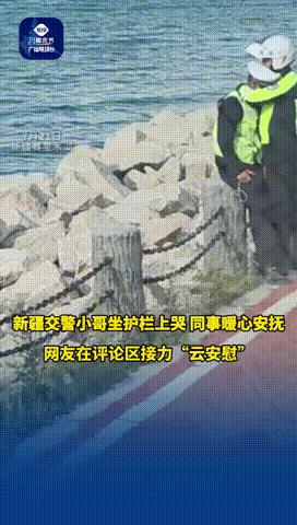 “这个交警哭出圈了!”新疆赛里木湖,交警小哥坐在岸边“泪崩”了,委屈的哭个不停,而同事则暖心安抚,一把抱在怀里擦眼泪,没想到网友也暖心接力“云安慰”!网友:别看个子高,其实他们也是孩子也需要善待![太阳] 7月22日报道,游客在赛里木湖游玩的时候,由于堵车在路上,结果没想到,却意外看到了一个年轻交警小哥的崩溃现场! 交警小哥看着年纪也不大,应该也是刚入职没多久,或者是去实习的,毕竟赛里木湖火了以后,游客多秩序需要维持,所以交警人手也增加了许多。 然而这个年轻的交警,不知道受了什么委屈,这会坐在岸边的墩子上,委屈的直掉眼泪,甚至哭到泪崩,情绪彻底失控。 幸好他的同事一直陪在身边,暖心的把他圈在怀里,轻轻的拍着后背,希望一时崩溃的交警小哥,能好好的发泄一下,尽快缓过来情绪。 甚至同事还把他帽子摘下来,鼓舞的擦去他的眼泪,像是在给他打气,又像是暖心哄人,而各种打气之后,刚刚还脆弱泪崩的交警小哥,这会擦干眼泪也整理好了情绪。 只不过从视频中看,这交警的年龄似乎还很小,活脱脱刚入职场的年轻人,或许是辛苦的工作中,一边顶着大太阳高温,一边还要不断的协调车流,遇到什么坎坷之后,这才一时泪崩。 而网友们面对交警的脆弱,却同样选择了暖心安慰,毕竟脱下这身制服,这些年轻的小伙子也是普通的大男孩,也有生活的委屈和无助,也是父母捧在手心的孩子。