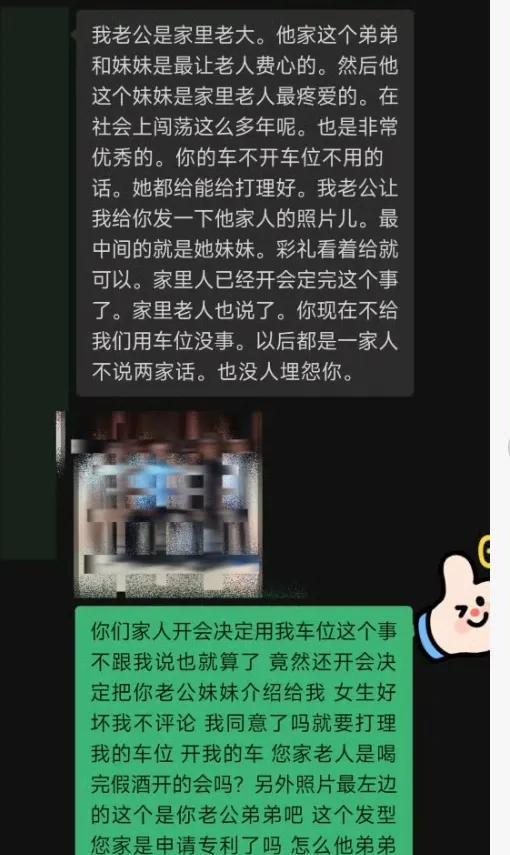 一位宝妈给她的邻居发信息,要求将邻居闲置的车位给她停车并充电,报酬是每度电让邻居赚4分钱,当然还有意想不到的“好处”。 一位宝妈,看中了其邻居有闲置不用的车位,就想让邻居让一个车位给她家停车,于是她给邻居发信息,给出了她的条件: 车位白天上班时不停,只有晚上才停,而且会付充电的电费。每度电多给邻居4分钱,此事全家人开会已经同意。以后邻居家有了宝宝,她可以帮助做辅食,只收成本价。如果邻居没有结婚,她还可以将自己老公的妹妹介绍给他。 不仅如此,她还把老公妹妹的照片发给了邻居,说家里人已经开会同意将她姑子嫁给他,彩礼看着给就行了。同时称,现在邻居不给车位也没关系,因为他们已经成了亲戚,早晚都是一家人,也没有人会怨他。 最后她的姑子实在看不下去,勇敢站出来结束了这场闹剧。这姑娘对邻居说了:我有男朋友,你坚决不要把车位给他们用。我是跟妈妈的,他们是跟爸爸的,没有血缘关系! 不知道你们看懂了没有,反正我是直接被绕晕了。看到最后,我都不知道她老公的妹妹与他老公究竟是不是亲兄妹!