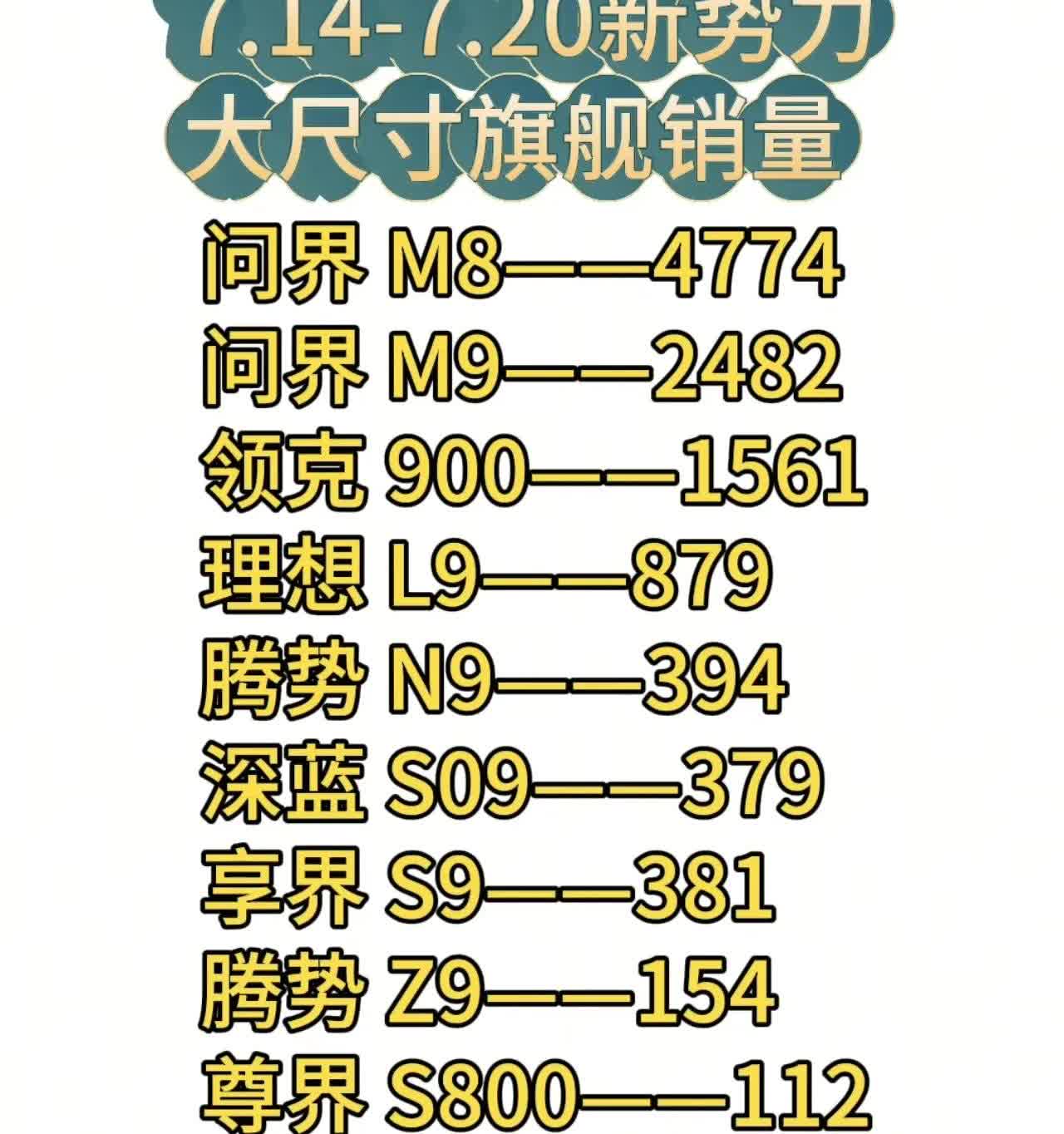 腾势N9销量惨不忍睹,腾势N8L回炉重造 最新一周大尺寸SUV销量显示,坐拥超强性能与易三方技术的腾势N9已经惨不忍睹了,彻底沦为陪跑车型,传言腾势N8L也回炉重造推迟上市。 此前的问界和理想推8系车,都是在9系已经成功的基础上推出来打性价比的,而腾势9系现在已经快废掉了,N8L即使现在推出,面对的对手都太强了,只能回炉重造看怎么提升竞争力。 另外,腾势D9本周也被岚图梦想家和魏牌高山超过,腾势品牌处境很艰难了。