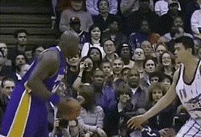罗德曼这个身高体重对于奥尼尔来说太菜了,他只能去犯规。 穆托姆博的感觉,和奥尼尔