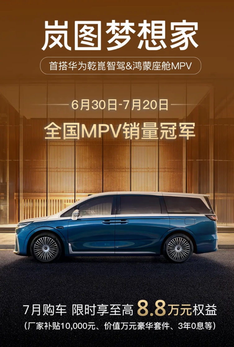 7月MPV销冠又是它?!岚图梦想家这“钉子户”太猛了 家人们快看啊!刚刷到7月M