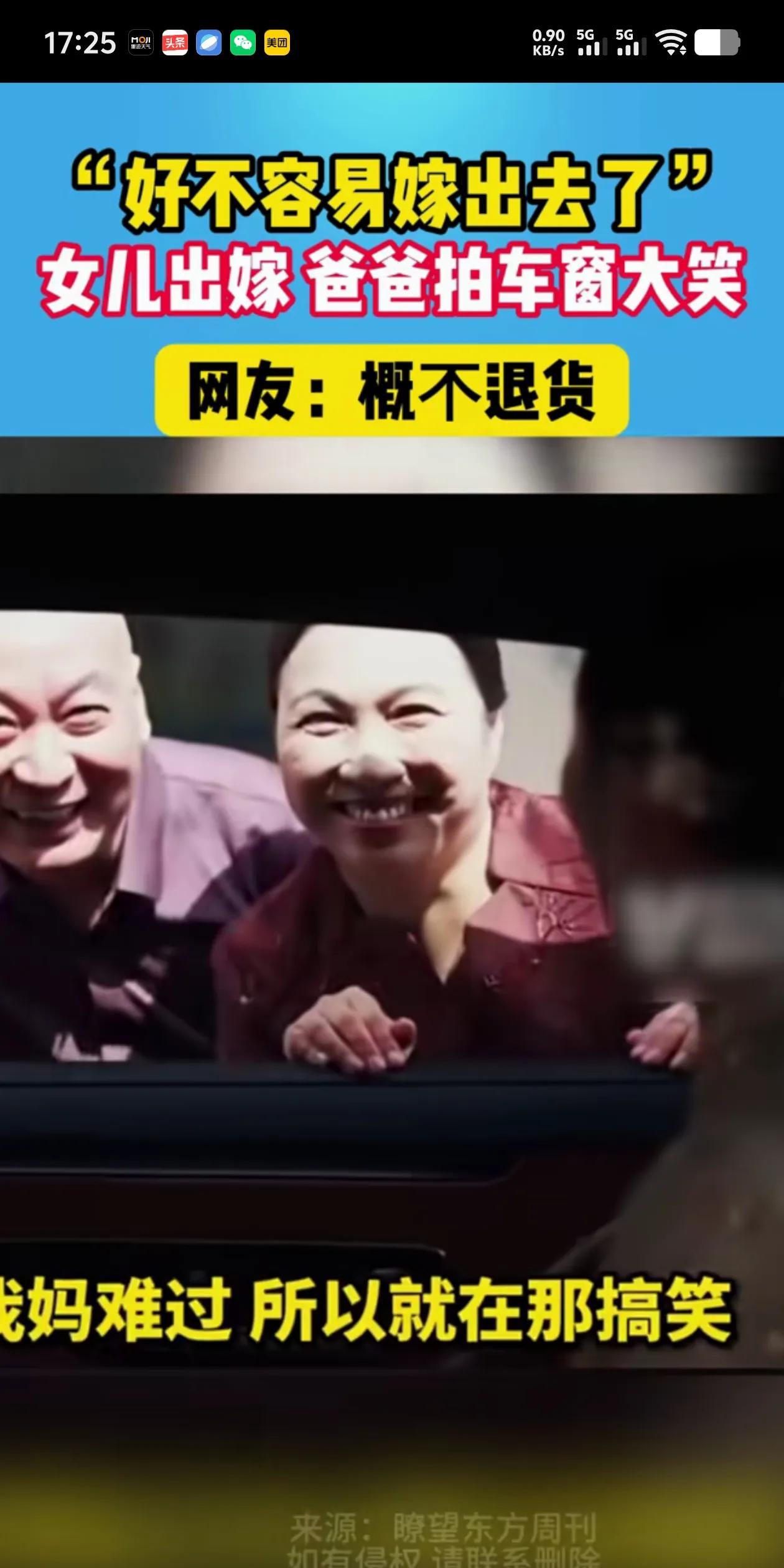 女儿好不容易嫁出去了, 老父亲开心的大笑, 老母亲也开心的笑了。 网友:概不退货