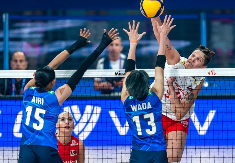 2025世界女排联赛1/4决赛,日本女排3-2土耳其女排,晋级四强。巴拉丁17扣0中!