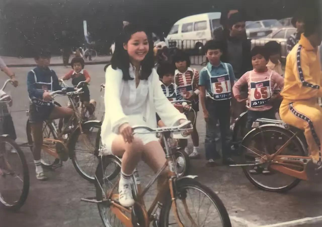 这是1977年在日本街头,邓丽君骑自行车的照片。 当时的邓丽君早已名声在外,有很