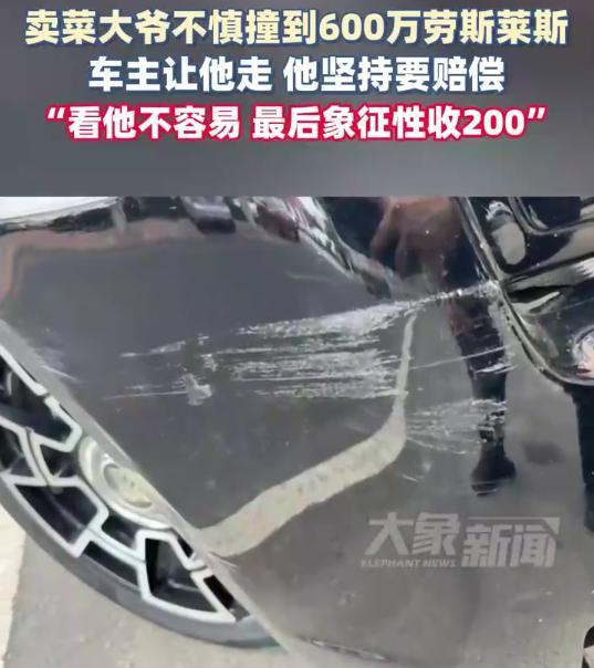 大哥开上劳斯莱斯是有原因的!内蒙古赤峰,男子开着600万的劳斯莱斯上路,途中一位卖菜大爷突然撞了上来,见大爷也不容易,男子就想着算了,让大爷走吧,见大爷坚持要赔偿,最终象征性的收了200块。网友:格局真的打开了! 车主介绍,当天一大早他的劳斯莱斯出婚车,可一位卖菜的大爷却突然撞了过来,虽然心里也有些生气,但看着大爷相当诚恳的态度,自己气也就消了 而大爷也没有选择摆烂,大概走了六七百块钱,说什么也要补偿给车主,而车主一看大爷这些钱,有零有整,甚至里面还有几块钱,就觉得心里很不是滋味,最后一番推辞,象征性的收了200块,让大爷离开了 对此,有网友表示:这车主真的有格局,看这碰撞面积,维修费应该要十几万起步 说实话,这事让我想起一个道理:成年人的体面是相互给的。车主完全可以按4S店报价索赔,但他选择了理解,大爷本可以借口没钱逃避责任,但他选择了担当。这种互相体谅的处事方式,比豪车本身更显珍贵 能开上劳斯莱斯,或许是因为他有钱;但愿意只收200块,说明他有心。这种“该出手时就出手,不计较时就放手”的态度,比车更贵
