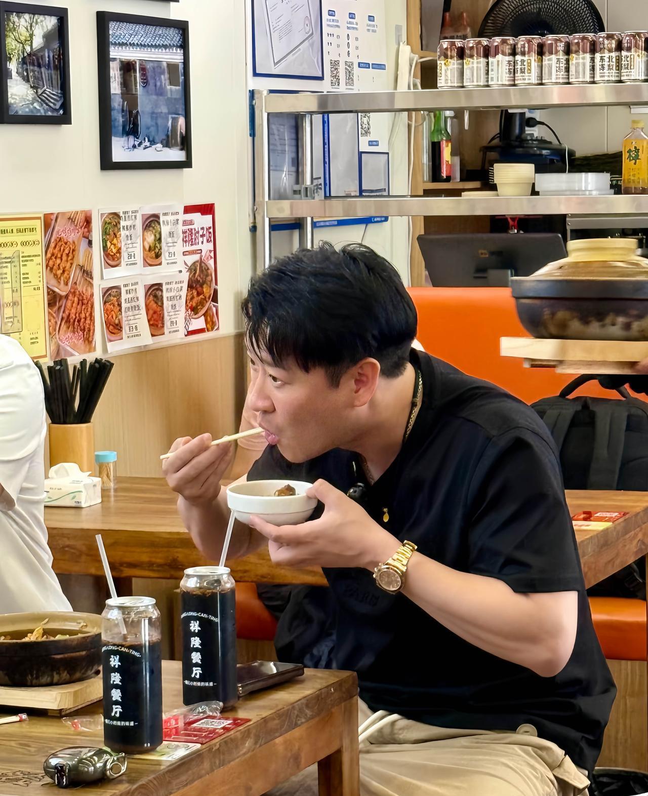 近日,有位网友在北京某小饭馆偶遇曹云金,他与好友一起吃饭的画面。 看曹云金干饭真香,桌子上的砂锅肘子拌饭,真的很合他的口味啊。#曹云金# #偶遇#