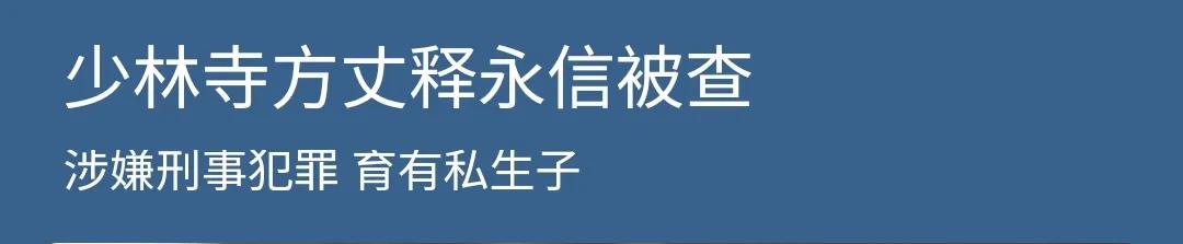 少林方丈释永信果然还是有事,说实话,意料之中,没有事才不正常。 唯一值得期待的,是事多大,能不能再次突破普通人的认知。 记得上次少林出状况的时候,还是北宋期间,当时的住持玄慈,跟叶二娘生了虚竹。 扯远了,虚虚实实,生活就这样,看清看远以后,出什么事都会习惯。