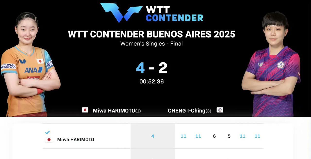 和你预判的一样, 今日凌晨四五点钟,两场WTT常规挑战赛布宜诺斯艾利斯站单打决赛