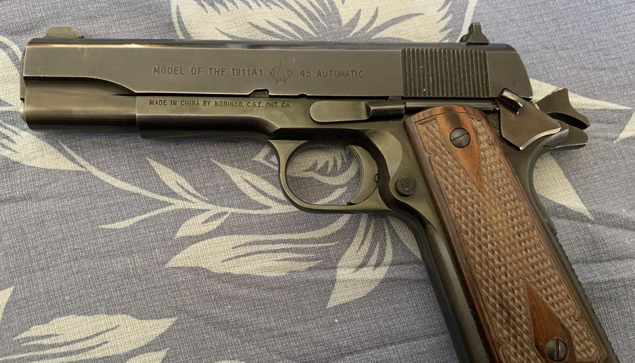 各位喜欢1911的军武宝宝们,今天武器知识带你看一把来自国产的实力派,北方工业出品的1911A1,它可是正宗的点45ACP口径武器,火力猛穿透强,子弹一发打出一个窟窿,完美复刻了美军经典的1911A1结构。 该枪设计127毫米长枪管,单动击发,精准可靠,后坐力稳得一批。全钢枪身,做工扎实,不仅超耐操寿命还长,最关键的是价格还香,将性价比直接拉满。