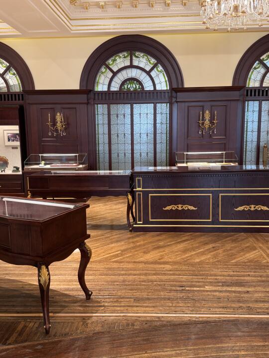 古典水晶灯、复古木地板、巴洛克风格墙壁…