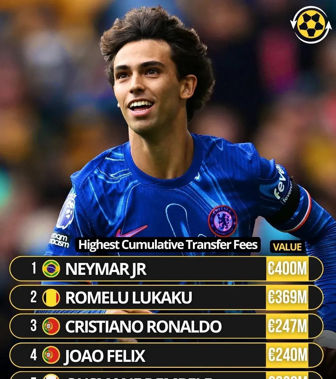 #头号创作者激励计划# 历史第四人,菲利克斯职业生涯转会费累计破2.4亿欧元!