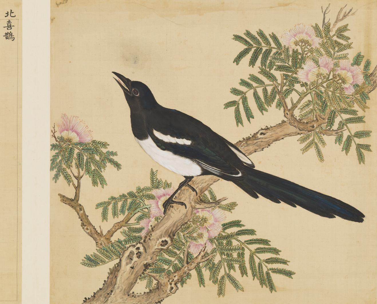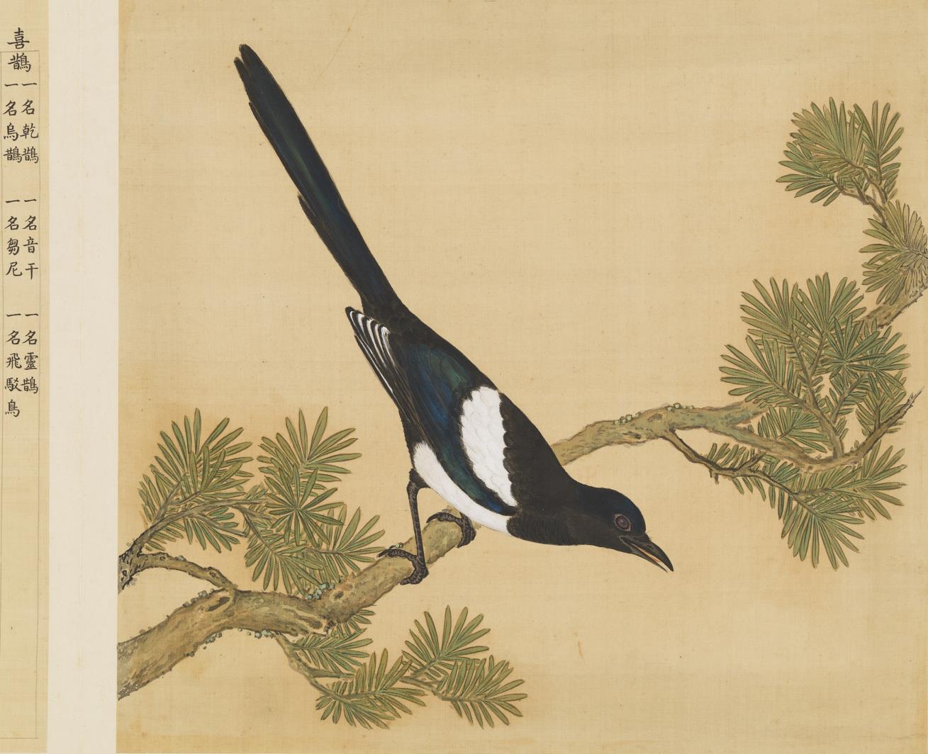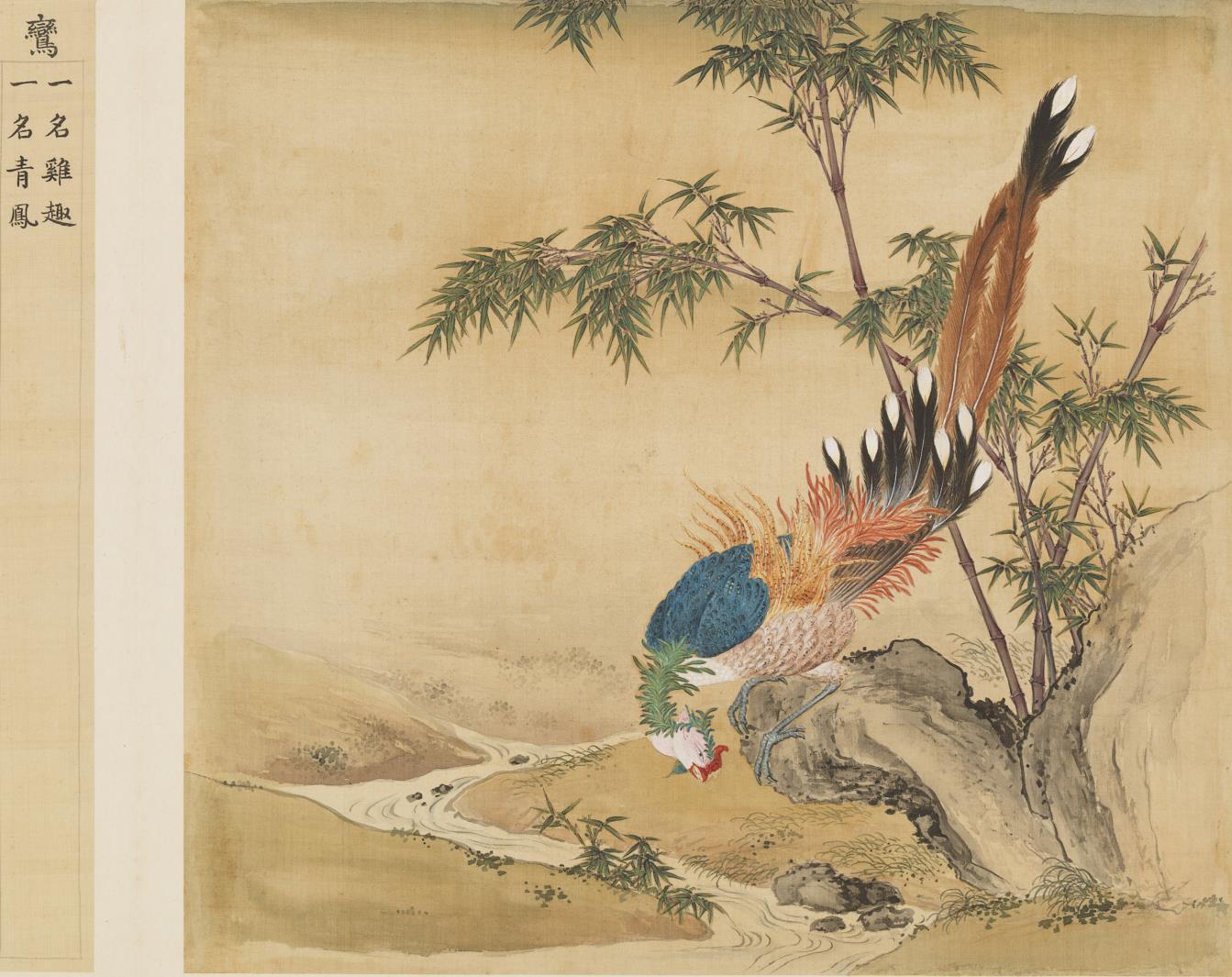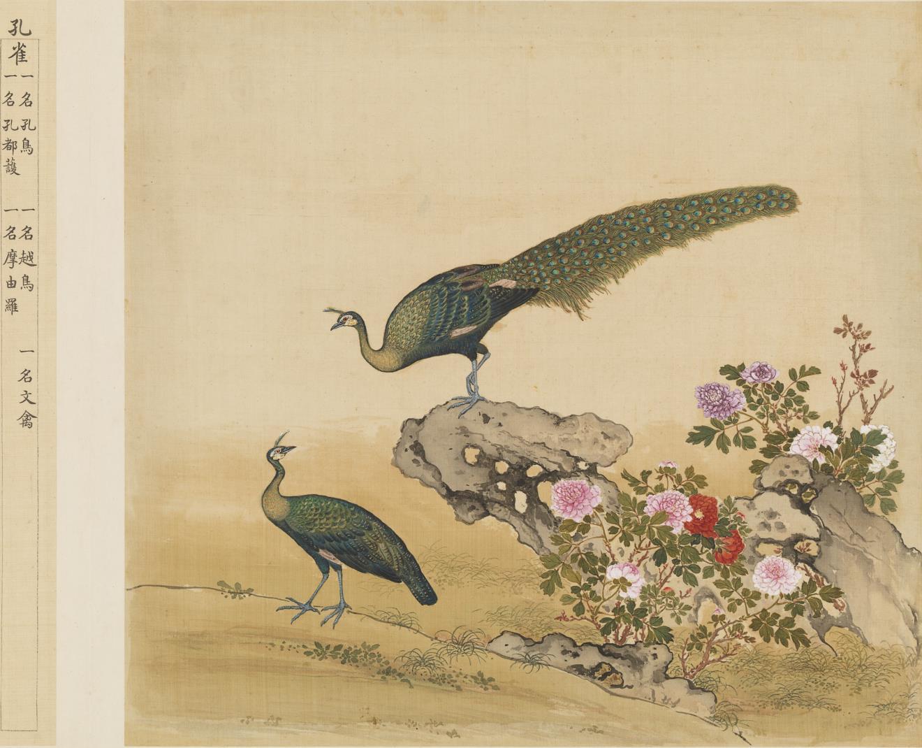 老祖宗笔下栩栩如生的鸟类(1)。此《鸟谱》系列图由清乾隆时期宫廷画师余省和张为邦摹绘。图依次为凤、鸾、孔雀、鹤、灰鹤、小灰鹤、蓝、北喜鹊、喜鹊、山喜鹊。这些鸟类有些是现实中存在的,有些则是神话传说中的,如凤凰,又作“凤皇”,亦称凤鸟、丹鸟、火鸟、鹍鸡、威凤等,为中国古代神话传说中的一对鸟类神兽组合,分有雌雄之别,雄为“凤”,雌为“凰”,两只鸟合称为凤凰。凤凰是华夏民族最重要的图腾之一。