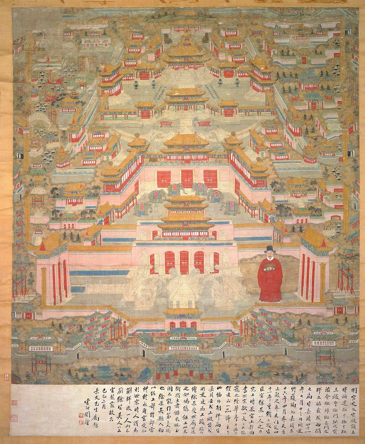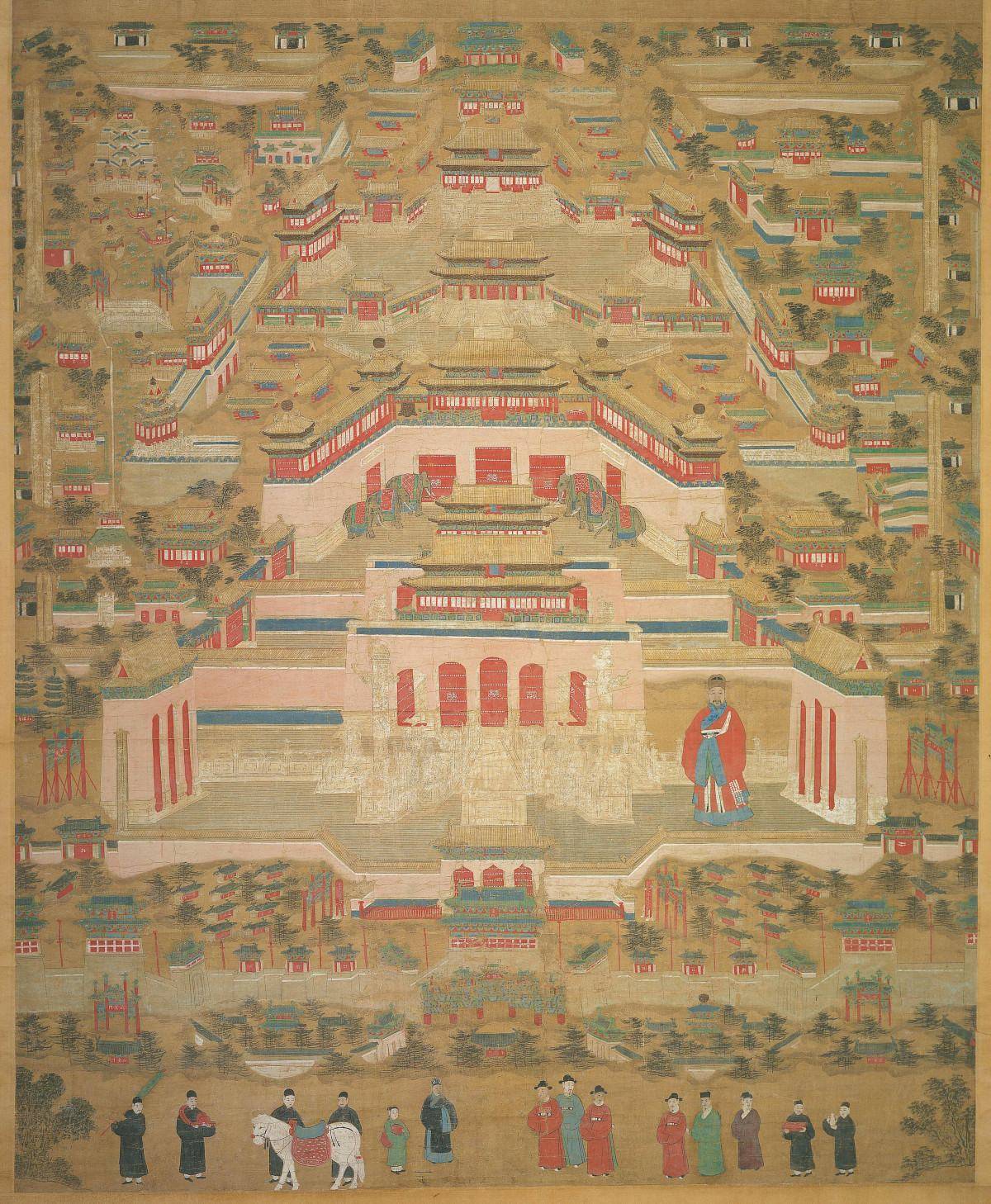 明代北京皇宫城墙的颜色,为什么是粉色?。这三张是明代紫禁城宫城图,第一章时间上应是最早,后两张应是明中后期重修时所绘。大体格局相差不大,但一个很明显的区别是,后两张中城墙的颜色变成了粉色。不知何故?查了些资料,没有能其他佐证那时的城墙到底是不是粉色的史料。