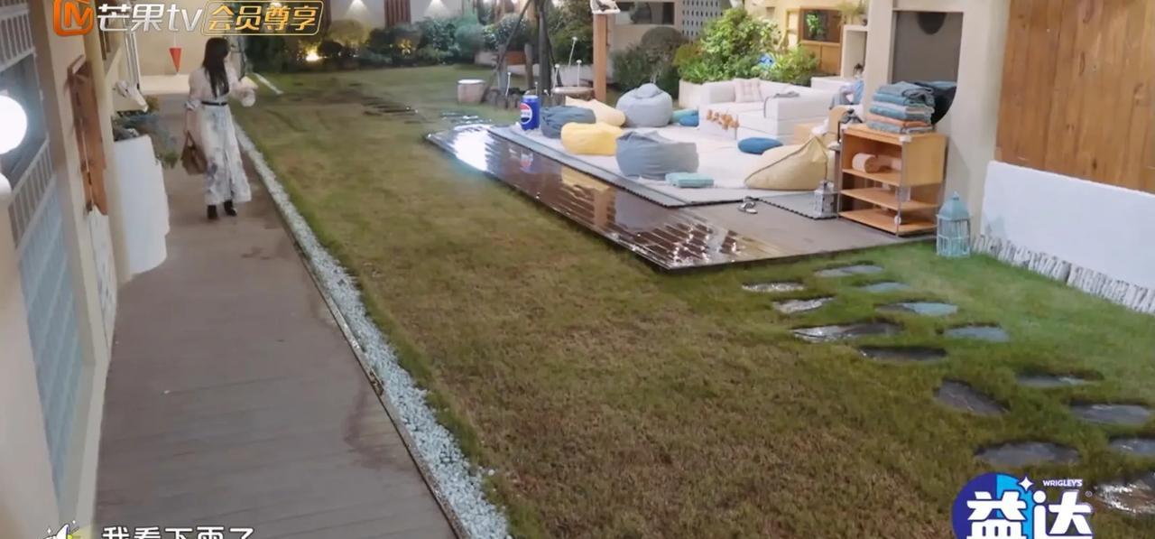 侯佩岑一进门就看到谢娜一个人 坐在院子里, 所有人都在屋内。 飘着小雨, 只有谢