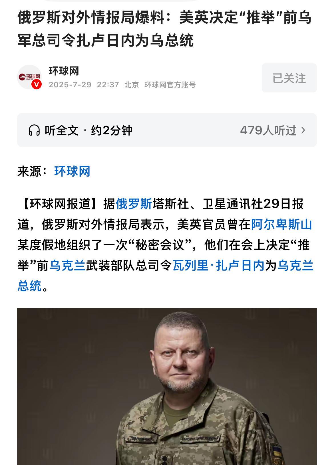 近日,某媒体有鼻子有眼地报道:美英准备推举前乌武装部队总司令瓦列里·扎卢日内为乌