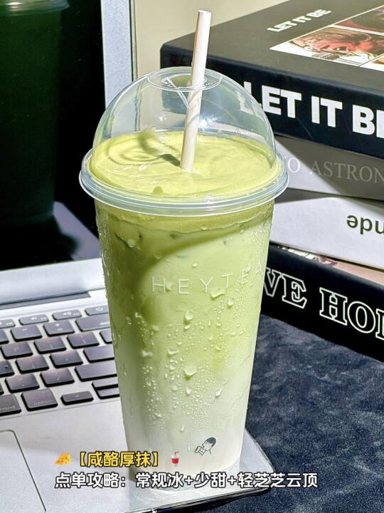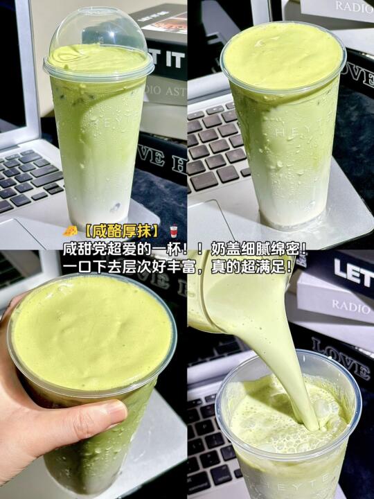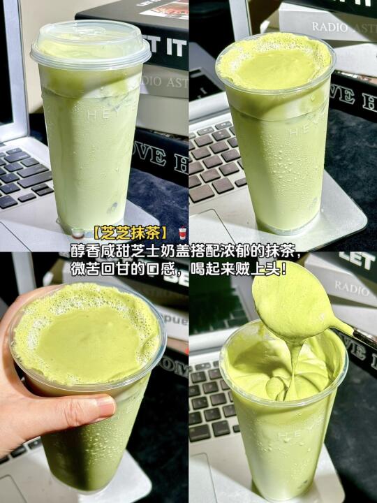 醇香的咸甜芝士奶盖搭配浓郁的抹茶,微苦回甘,喝起来贼上头!