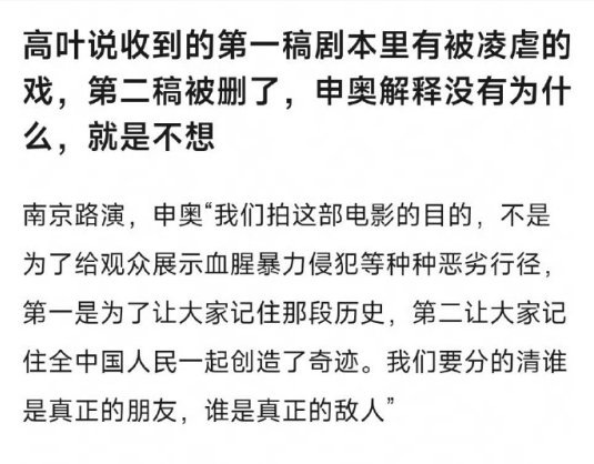南京照相馆第一稿剧本高叶有被凌虐的戏,第二稿被申奥删了 申奥是正常人的含金量还