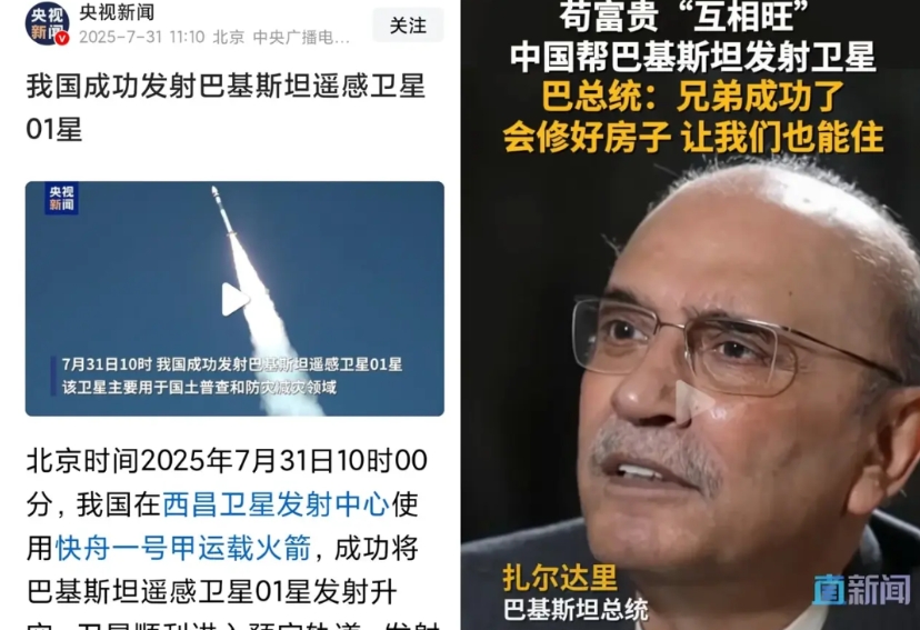 扎尔达里也老了! 巴铁兄弟,你们跟美国人合伙开发巴基斯坦的石油,是因为发射卫星美国人不肯帮忙吗? 但我们对待朋友是真诚的! 7月31日,我们已成功将巴基斯坦遥感卫星01星发射升空,卫星已顺利进入轨道。