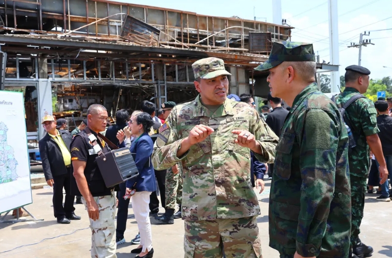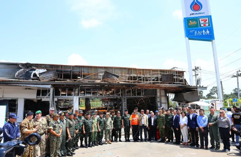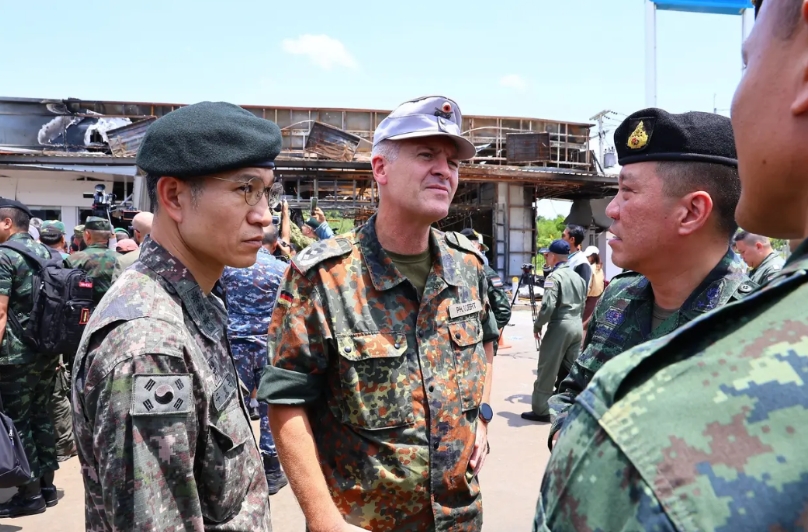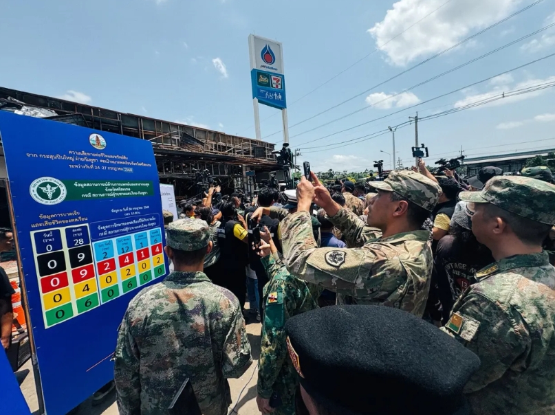 柬埔寨刚把各国武官拉到现场,泰国又来拉人了:8月1日,就在柬埔寨国防部将中、美、俄、法、日,以及东盟等国驻当地武官拉到柬泰冲突战场进行考察的一天后,泰国国防部也照样来了一次,也邀请各国武官前往战场考察。 从照片看,泰国方面邀请的国家似乎更多,有中、美、英、德、印、日、韩等国,还有越南、老挝、新加坡、加拿大、印尼、巴基斯坦等国,图2和图3可以看到中国驻泰国的武官正在查看泰国方面设置的说明展板。泰国方面在一个被柬埔寨炮火摧毁的加油站旁边设立了参观介绍点,向各国武官介绍了柬埔寨方面对平民的打击,并将多个受伤平民和家属安排在现场。现场家属的照片显示,有儿童死于柬埔寨方面的炮火。 根据之前泰国公共卫生部公布的伤亡情况,本次冲突导致泰国方面17名平民死亡、38名平民受伤,另外,还有15名军人死亡。