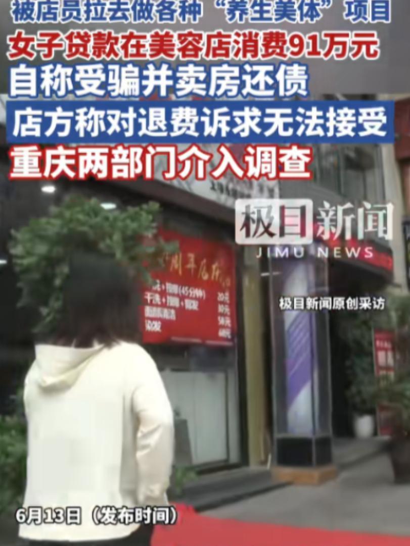 “能在美容院消费91万元也是神人!”重庆一女子为做美容在各个网络贷款平台共计借出八十多万元,将借来的钱全部充值到当地一家美容店,却因效果不佳要求退还72万元,店家自然不同意,于是女子自称受骗并且还表示自己要卖房还债,当地部门以及卫健委已经介入调查。网友:能在美容院消费91万元也是神人! 今年6月,重庆那边出了个事,网上吵得挺凶,起因是有人在本地一家美容院花了 91 万做美容,其中 80 多万还是从各种网贷平台借的,后来觉得没效果,想退 72 万,店家不答应,女的被逼得说要卖房还债,这事儿一出来,网友评论里最显眼的就是那句:“能在美容院花 91 万也是神人!” 说起来这女的姓胡,三十多岁,平时挺在意自己形象的,这两年总觉得脸上皮肤松了,眼角有细纹,有时候跟朋友聊天,听人说 “看着比实际年龄大”,心里就有点不是滋味。 她老公有次开玩笑,说她 “眼角纹能夹蚊子”,虽是句玩笑,却像根小刺扎在她心里,琢磨着得找地方好好打理下。 也是巧家附近新开了家美容院,装修得挺亮堂,门口总有人发传单,胡女士被说动了,进去想做个基础护理,一进门,几个穿制服的小姑娘就围上来了,嘴甜得很,“姐你底子真好,就是有点缺水”“我们家新上的补水项目,做一次就能看出亮泽度”。 她半信半疑试了一次。做完对着镜子看,确实觉得脸白净了点,心里一动就听小姑娘说:“姐你看这效果多明显,办张卡划算,五千块能做十次。” 她想着也不贵,就办了张卡,后来才知道那天脸上的 “亮泽”,是人家偷偷抹了层素颜霜,洗把脸就没了,但当时她没察觉,只当是美容院技术好。 这一办卡就像踩进了泥潭,刚开始是每周去一次,卡里的钱很快见了底,小姑娘们又开始推荐别的:“姐,补水只是基础,你这皮肤得深层调理,我们刚引进的仪器,能刺激胶原蛋白再生,做三次就能看出紧致感。” 胡女士犹豫说贵,对方就指着她的脸:“姐你摸摸,是不是比刚来的时候嫩多了?女人对自己好点才值当啊。” 她被说动了又续了几万。可这钱像流水似的花出去,从基础护理到 “排毒养生”,再到后来听着就玄乎的 “肝胆疏通”,项目越来越贵,名头越来越大。 店员说这些项目能 “从内到外改善气色”,“比护肤品管用一百倍”,胡女士想着 “一步到位”,咬咬牙接着做,没多久自己手里的积蓄就花光了。 这时候店员又跟她说:“姐,你看你这效果都快出来了,停了多可惜,我们这儿有合作的贷款平台,利息不高先借点把疗程做完,等变美了再慢慢还。” 她当时一门心思想着 “变年轻”,脑子一热就听了劝。 一开始只是在一个平台借了几万,后来不够,店员又帮她找了别的平台,这个借五万,那个贷十万,APP 下了七八个。 前前后后算下来,她在美容院一共充了 91 万,光网贷就欠了 80 多万,可钱花出去了,效果却没等来。脸上该有的细纹还在,所谓的 “排毒” 也没看出啥变化,甚至因为总熬夜担心还款气色比以前还差。 这时候她才回过神,觉得自己可能被骗了,冲到美容院要退钱,说剩下的项目不做了,按比例得退 72 万。 可店家拿出消费记录,说 “所有项目都是你自愿办的,合同上写了不退不换”,最多只能退没做的那几个小项目,算下来也就 4 万块。 4 万哪够还网贷?那些平台的还款日像催命符似的利息越滚越高,胡女士急得满嘴起泡,跟家里人一商量,实在没办法,只能把名下一套小房子挂出去卖,那房子估值 60 万,就算卖了,离 80 多万的债还差 20 多万的窟窿。 走投无路的时候,她给媒体打了电话,又去市场监管和卫健委反映情况,现在这两个部门已经介入调查,说要查查美容院的项目是否合规,有没有诱导借贷的行为。 网上议论这事儿的时候,有人说胡女士太冲动,“91 万做美容,咋想的”,也有人骂美容院黑心,“明知道人没钱还怂恿借网贷,这不坑人吗”。 还有人说现在的美容院套路太多,先给点小恩小惠让人上钩,再一步步套牢,尤其专挑那些有点容貌焦虑的人下手。 胡女士自己也后悔,说当初要是能冷静点,别被 “变美” 的念头冲昏头,也不至于落到卖房的地步,可世上哪有后悔药?现在她就盼着部门能查清楚,店家能退点钱让她能喘口气。 (信息来源;极目新闻——重庆女子借贷款在美容店消费91万元,自称受骗并卖房还债,两部门介入调查)