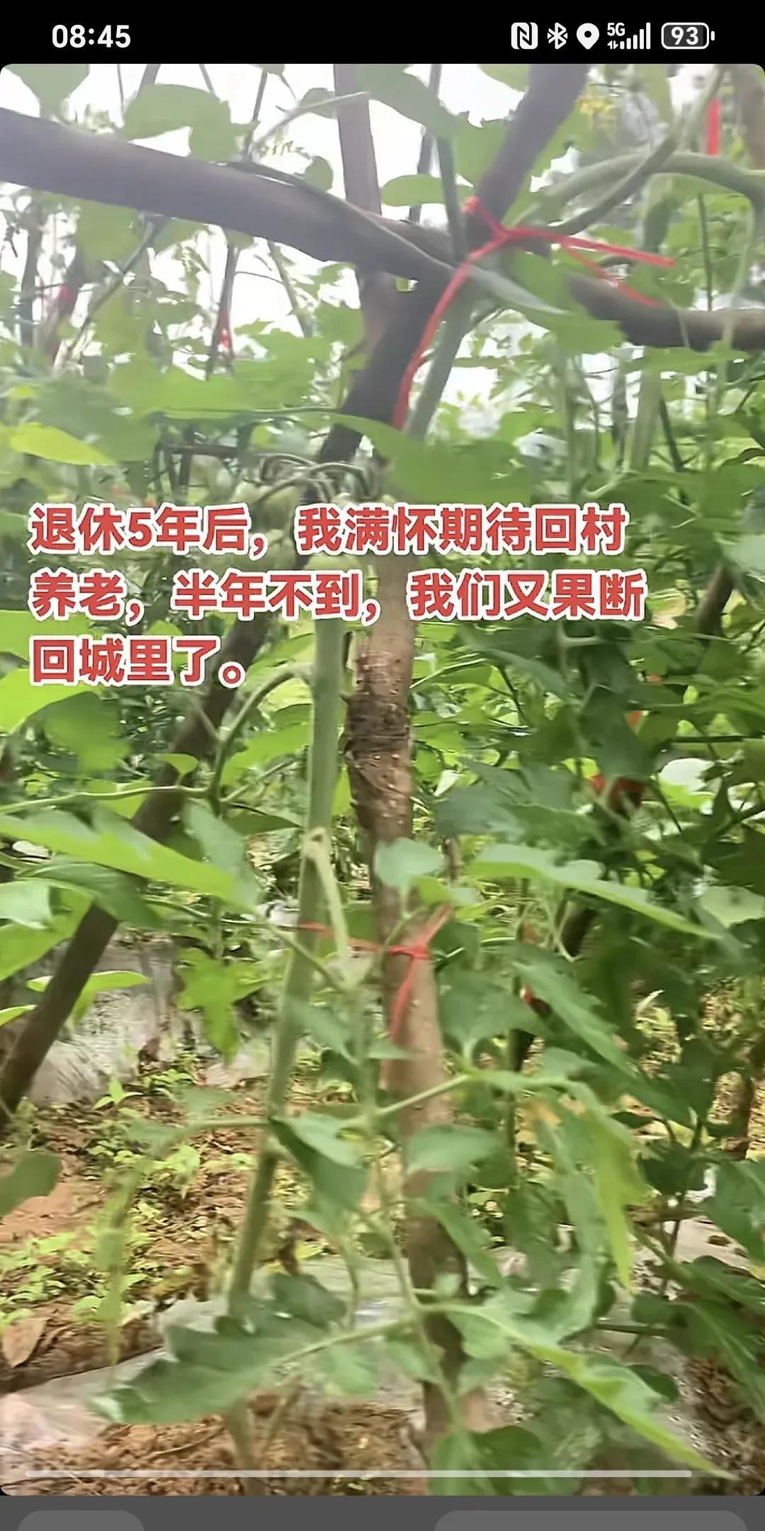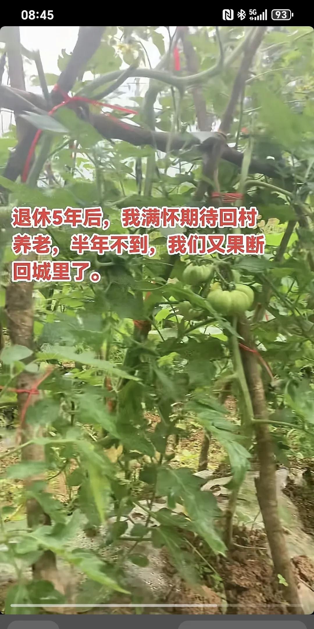 退休五年,我满怀期待回村养老,半年不到,我们果断回城里了~ 回去后啊,我这个心思彻底凉了,本想着回村里颐养千年,没成想人心难测,村里自然条件是好,但是人际环境太差,各种人情世故,条条框框,比城里复杂多了。 回村养老,最终还是太难融入,我和老伴决定放弃农村养老计划,还是回城里吧,就是可惜这个老房子。如果遇到合适的人就卖了吧,这里我们应该不会再回来了。 回村养老的愿望固然是好的,真的回去了,不一定过的想象中的舒心,太多让人意想不到的问题要面对。