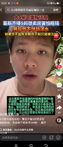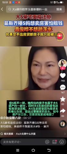 近日台湾地区记者葛斯齐在直播时再次聊到s家的话题。表示现在最着急的是s妈,汪小菲反倒是无所谓,毕竟汪小菲有自己的事业,有钱养孩子,有关孩子继承的问题也有专业律师处理,反正钱都是给孩子,汪小菲只需坐等结果就行了。但s妈不一样,她所住的房子也是大s遗产的一部分,同时大s生前所住的房子房贷还没有还呢。大s生前就因为房贷太贵难以负担提出过有准备搬家的念头如今遗产分三分,交房贷就更成为难题了。具俊晔似乎也不想填房窟窿,虽然台媒多次报道光头不差钱的人设,但看来他也不想还房贷来保留大s的故居。之前传出他要负债贷款,友人直接回应“没这回事”。大S的房子面临法拍,s妈着急,具俊晔不想趟浑水,如果交不出房贷只能面临法拍了。