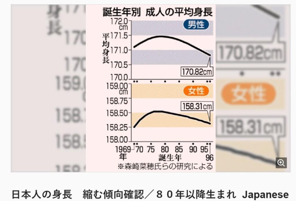 三十年身高倒退,日本人为什么越来越矮了? 最近有个挺让人意外的事儿,从 1994 年到 2021 年这段时间里,日本 17 岁男性的平均身高,居然从 1994 年的 170.9 厘米,降到了 2021 年的 170.8 厘米。 而且据说,1980 年后出生的这一大波群体,身高也都在往下降呢。 更夸张的是,要是一直这么下去不采取啥措施,预测到 2035 年,日本男性的平均身高可能还得再降个 2 厘米。 这可太让人好奇了,曾经还努力想长高的日本人,咋就走上了身高倒退的路呢? 咱先从根子上找找原因,低体重儿比例上升就是个大问题。 在日本,现在很多妈妈生出来的宝宝体重偏低。 您想想,宝宝出生时体重就不达标,这成长的基础就没打好啊。 为啥低体重儿变多了呢?一方面,日本社会生活节奏快,压力大得很。很多年轻女性在怀孕的时候,还在高强度地工作,精神长期处于紧绷状态,这对胎儿的发育可没好处。 另一方面,不健康的生活方式也有影响。有些孕妇饮食不规律,该补充营养的时候没补够,导致胎儿得不到充足的养分,自然出生时体重就上不去了。 除了低体重儿的问题,日本年轻人现在的生活习惯也是一塌糊涂。 先说说饮食,现在的日本年轻人,对那些垃圾食品可太痴迷了。 什么油炸的小零食、高糖的饮料,吃起来是一个接一个。 像在学校的食堂里,孩子们选那些没营养的速食食品的比例越来越高,而富含蛋白质、钙这些对长高特别重要的食物,却吃得越来越少。 长此以往,身体得不到足够的营养支撑,身高发育自然就受影响了。 再看看运动,日本的孩子和年轻人,运动量实在是少得可怜。 在学校里,体育课的时间经常被各种文化课占用,孩子们没有足够的时间去锻炼。 而且,现在电子产品太普及了,课余时间,孩子们都窝在家里玩手机、打游戏,很少出去跑跑跳跳。 天天这么坐着不动弹,身体的骨骼肌肉得不到锻炼,怎么能长得高呢? 还有睡眠,这也是个大问题。日本的社会竞争激烈,从学生时代开始就有做不完的作业、上不完的补习班。 很多孩子晚上都要熬夜学习,睡眠时间严重不足。 到了工作以后,加班更是家常便饭,不少年轻人回到家都已经深夜了,睡眠质量还不好。 要知道,生长激素可是在睡眠中分泌最旺盛的,睡眠不足或者质量差,生长激素分泌就少,身高自然就长不上去了。 这么看来,日本人身高下降可不是一个简单的事,是社会、生活等多方面因素综合作用的结果。 要是日本社会不重视起来,不赶紧改变这些现状,这身高下降的趋势恐怕还真刹不住车。 大家说说,日本要怎么做才能扭转这个身高下降的局面呢?