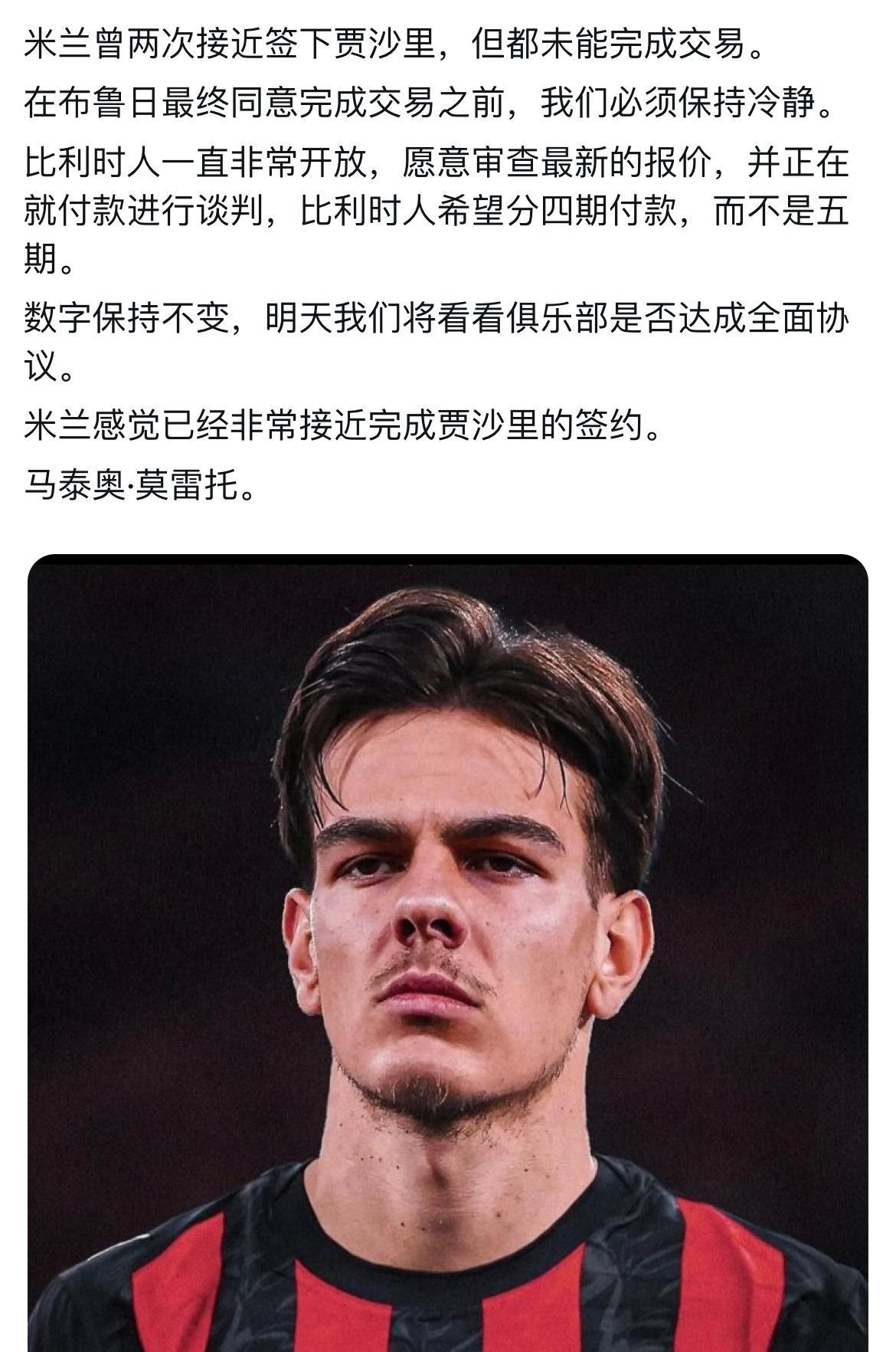 贾沙里交易重现曙光! #我的主队##AC米兰# 罗马诺和莫雷托都报道,米兰签