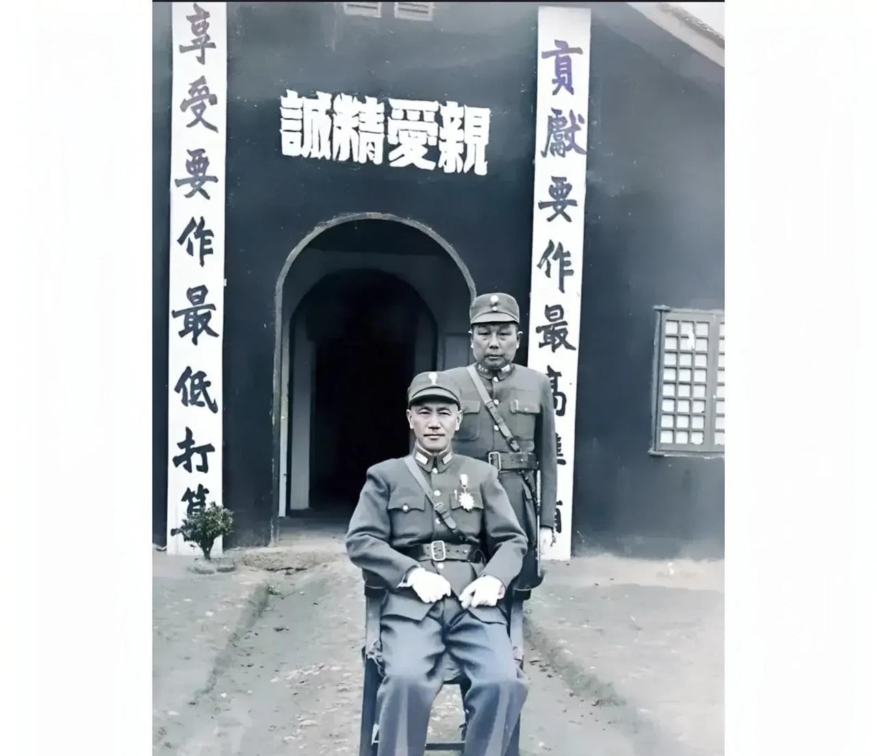 上世纪40年代,贵州,蒋介石和杨森的合影老照片