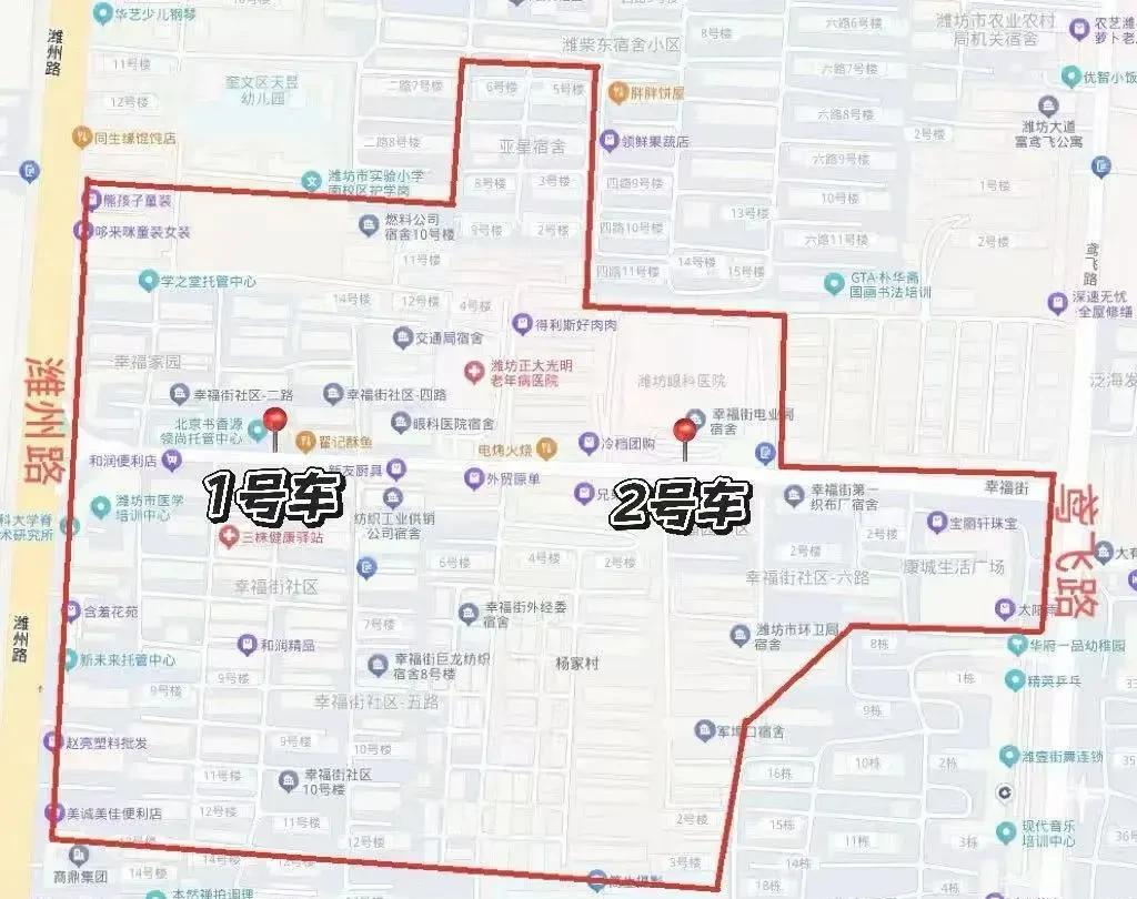 潍坊最新停水公告。请提前储水。 因幸福街(潍州路-眼科医院段)供水管道进行改造。 停水范围:幸福街(潍州路-鸢飞路)两侧住户。 停水时间:2025年8月8日22:00—8月9日10:00。 在此期间,潍坊自来水公司准备两辆应急车辆,进行临时供水。 1号车 幸福街三路路口北 车牌号 鲁V5DJ70 2号车 眼科医院门口 车牌号 鲁VK7958